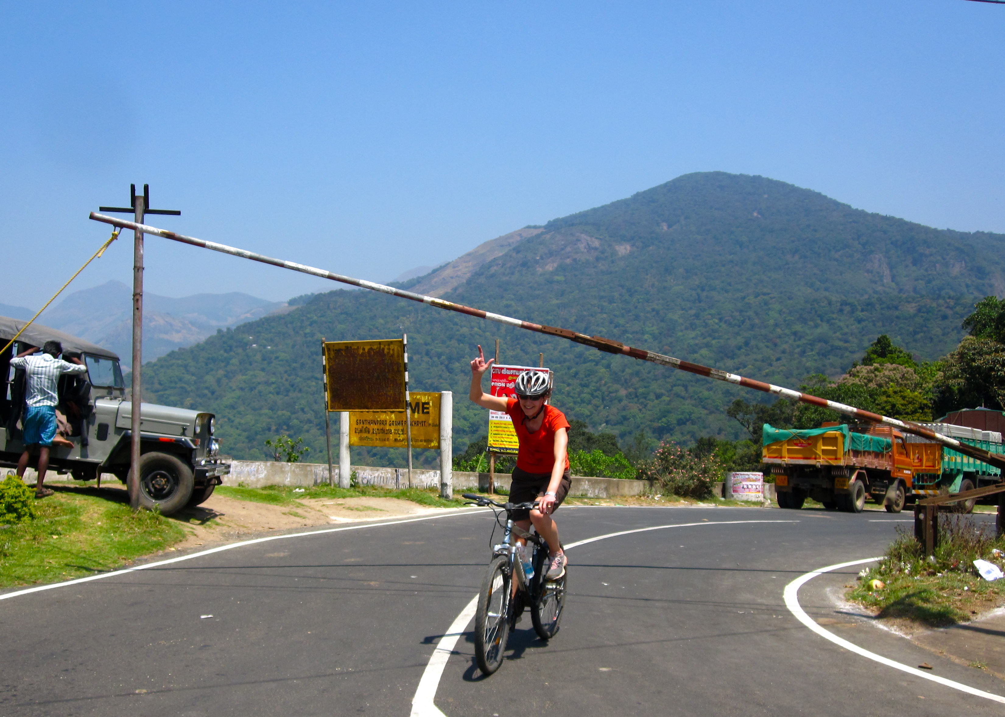 Allegra gives a “pistolero” salute crossing into Tamil Nadu