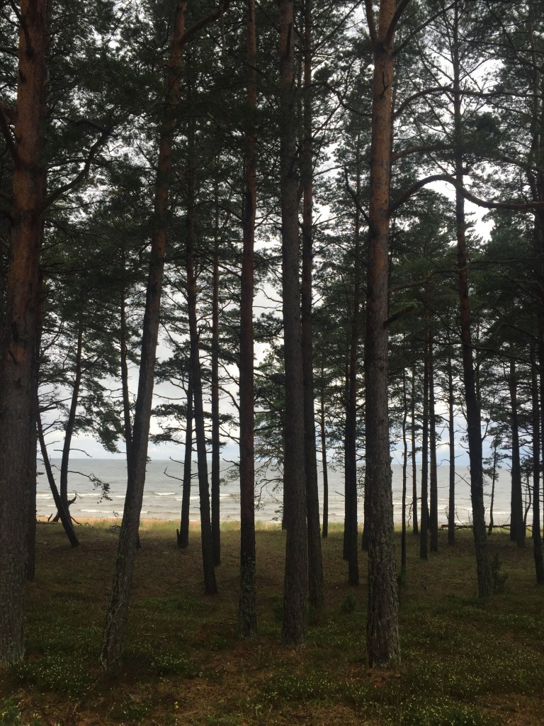 What a challenging day. I awoke early to gray and blustery skies and a strong wind coming in off of the Baltic, but no rain (yet). I headed out, south down the narrow coastal road, catching glimpses of the sandy shore and dark wavesthrough the pine trees.