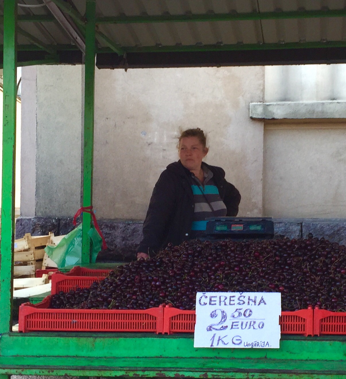 I also found the local market and bought some delicious tart cherries, though I wish I had room in my panniers for much more. By late afternoon, the skies darkened and it started to pour (wet again).