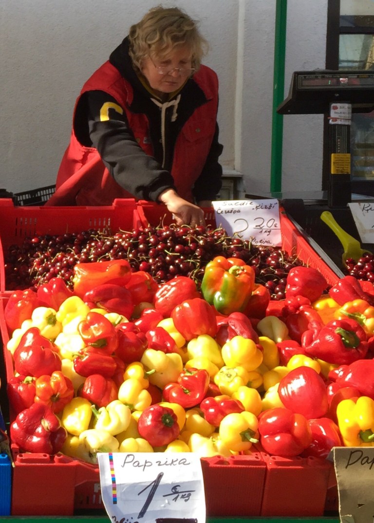 I wasn’t making very fast progress. Finally, by mid day I arrived in the small town of Saulkrasti, where I found a great little farmers market and a stand with freshly foraged wild blueberries and a cozy Latvian lunch counter with mushroom soup, cabbage salad, stuffed cabbage leaves with sour cream and pickles. Life had taken a turn for the better.