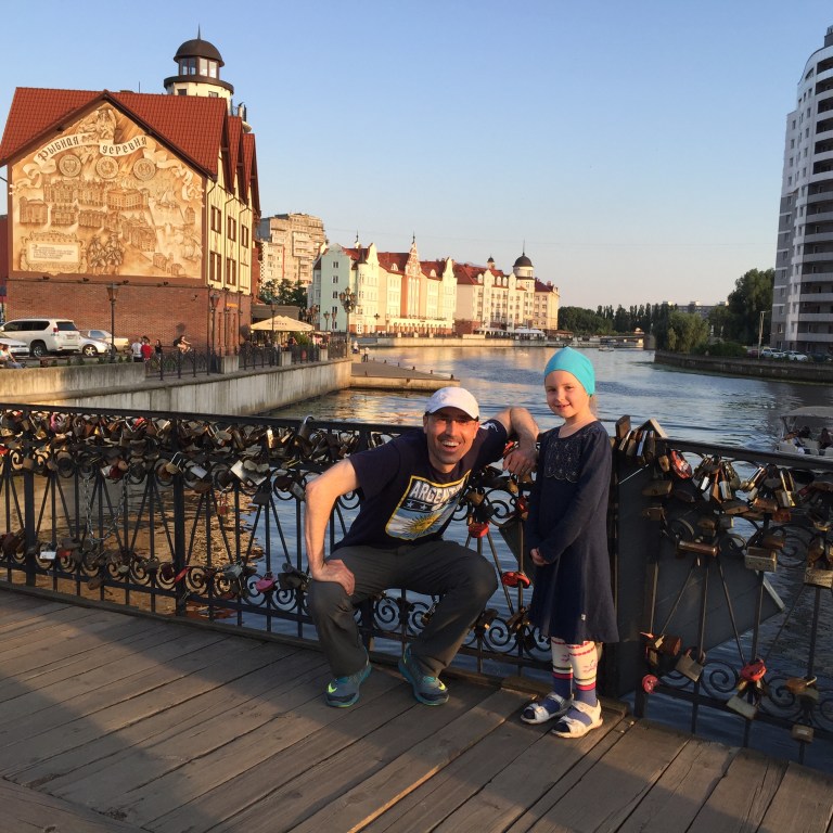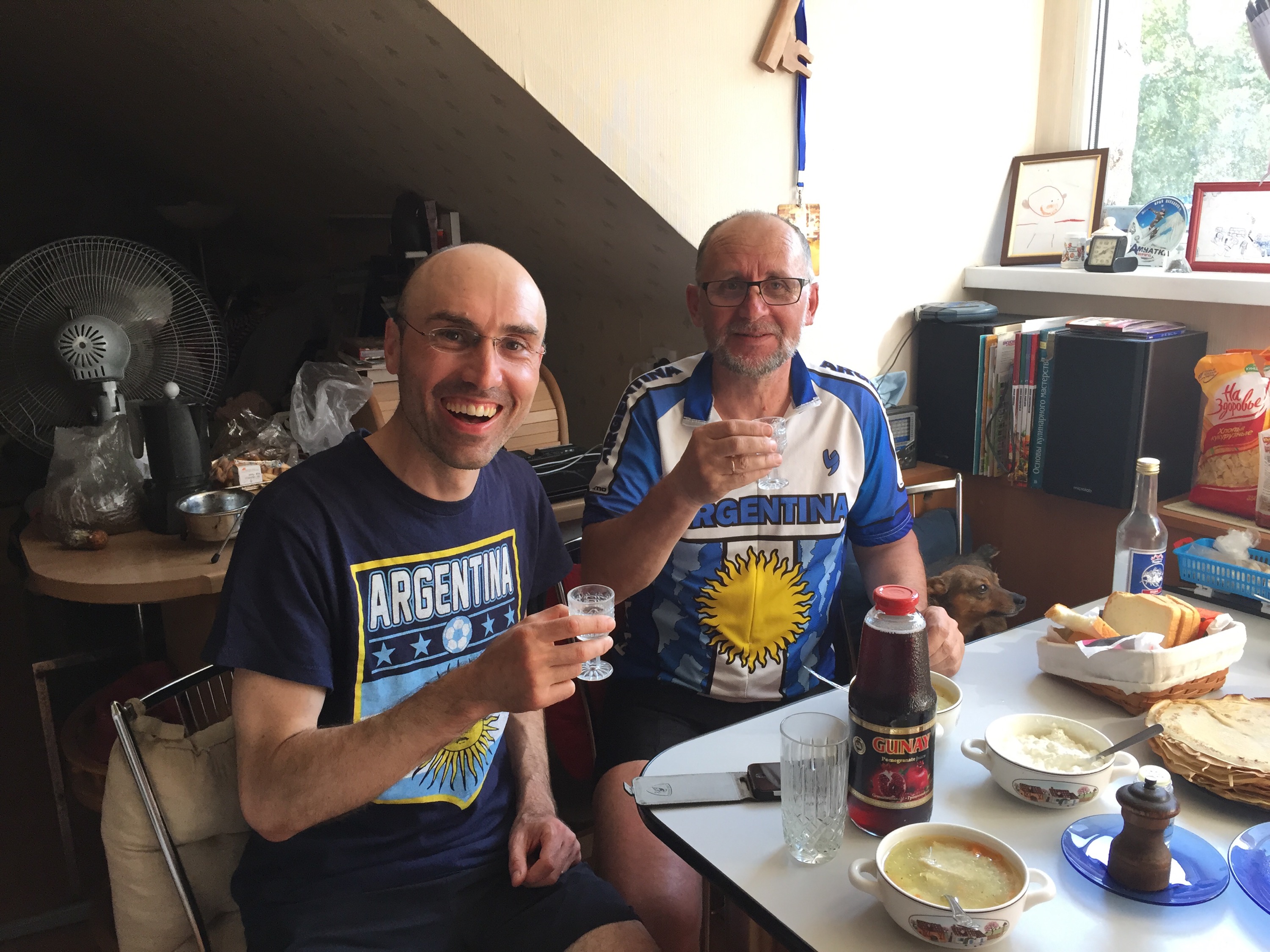 I made it to Kaliningrad and met my Warmshowers host Valery and his lovely family. They live in a small and modest flat but were as generous and welcoming as could be imagined. When I arrived, it turned out we were both wearing Argentina shirts so I knew all would be fine. As seems to be happening regularly, Valery welcomed me with a shot of cold vodka, plus delicious chicken soup and blini filled with cheese and homemade black currant jam.