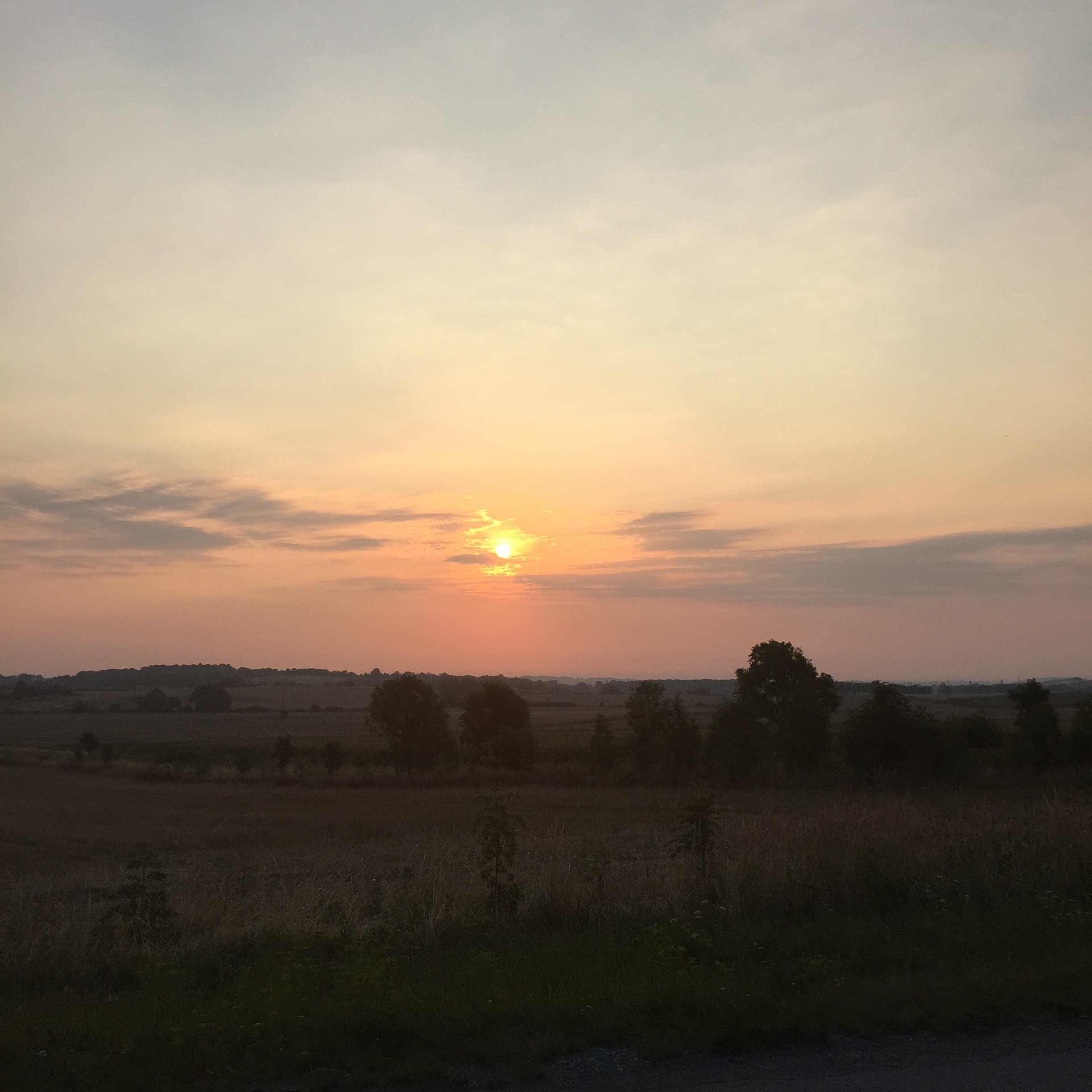 I don’t mind riding in the heat, but on a fully loaded touring bike over hilly terrain, it certainly made for an honest day of work. It was also a gorgeous day cycling through the rolling foothills of the Western Carpathian mountains. My day began on a promising note as the friendly owner of the bed and breakfast where I stayed, a red cheeked and round woman with a quick smile, woke up at 5:30 to feed me a breakfast of eggs, coffee, bread and cheese, oatmeal and a slice of chocolate cake. The breakfast of champions! And another reminder of the incredible hospitality and friendliness of the Polish people I have met. The early morning hours were quiet, peaceful and painted with an orange glow.