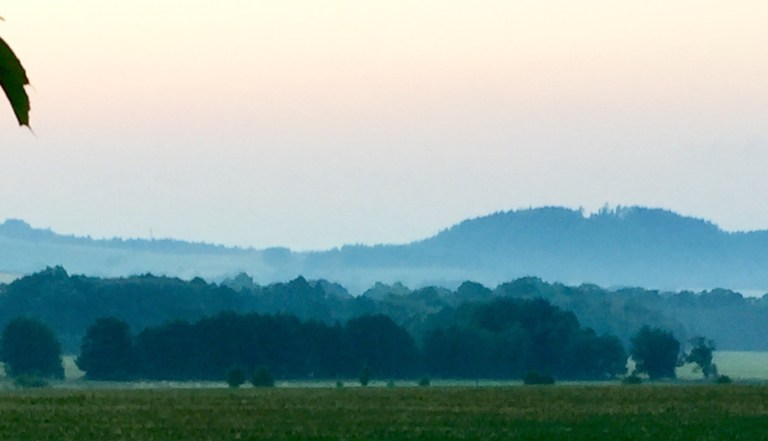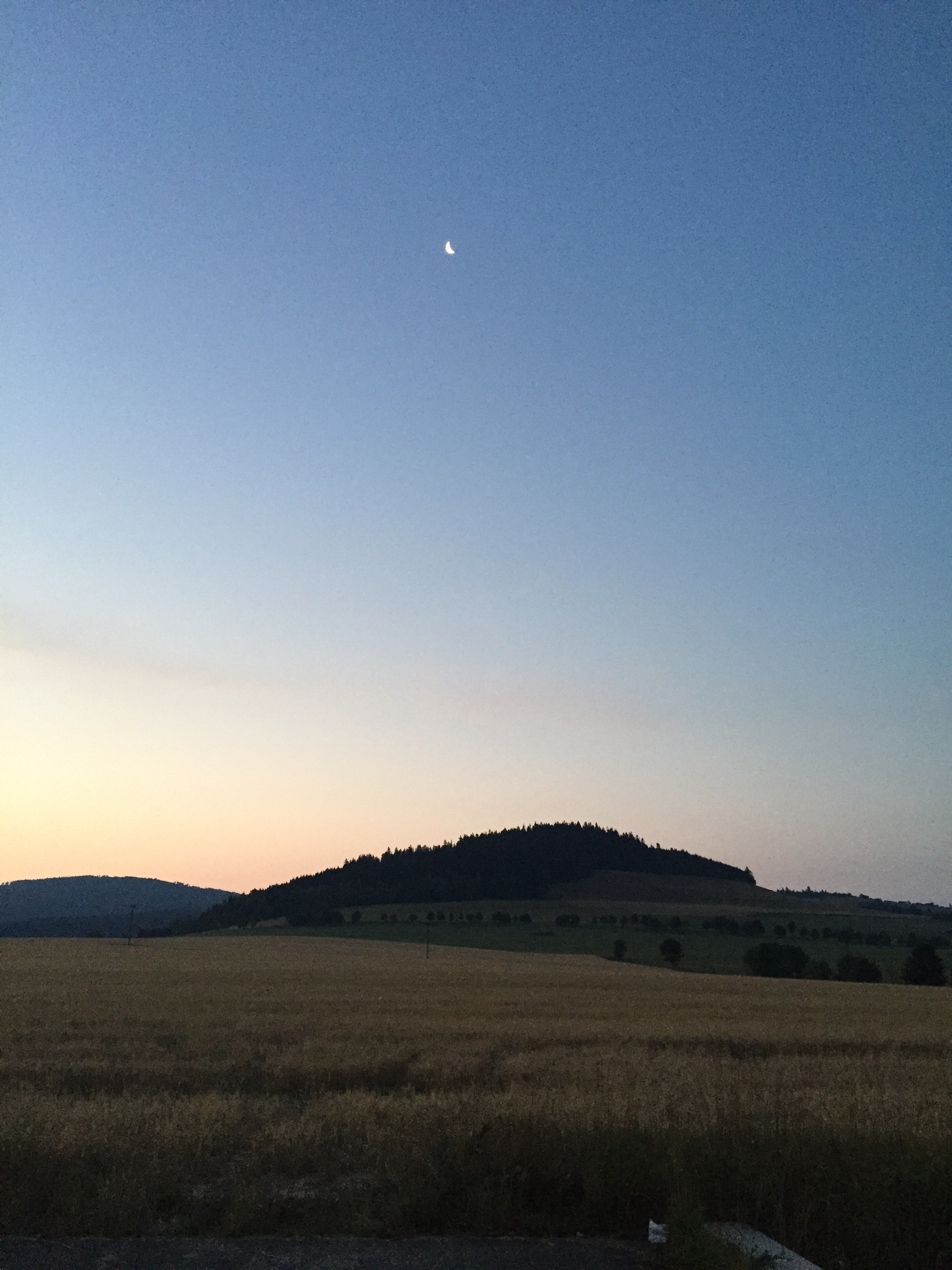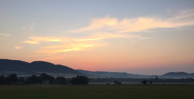 Today ended up being a gorgeous and fast ride of about 75 miles into Brno. After yesterday’s challenges in the heat, which almost left me camped out in the dairy isle of a grocery store, I resolved to get started very early and was on the road by 5:00 am, with the moon still in the sky.