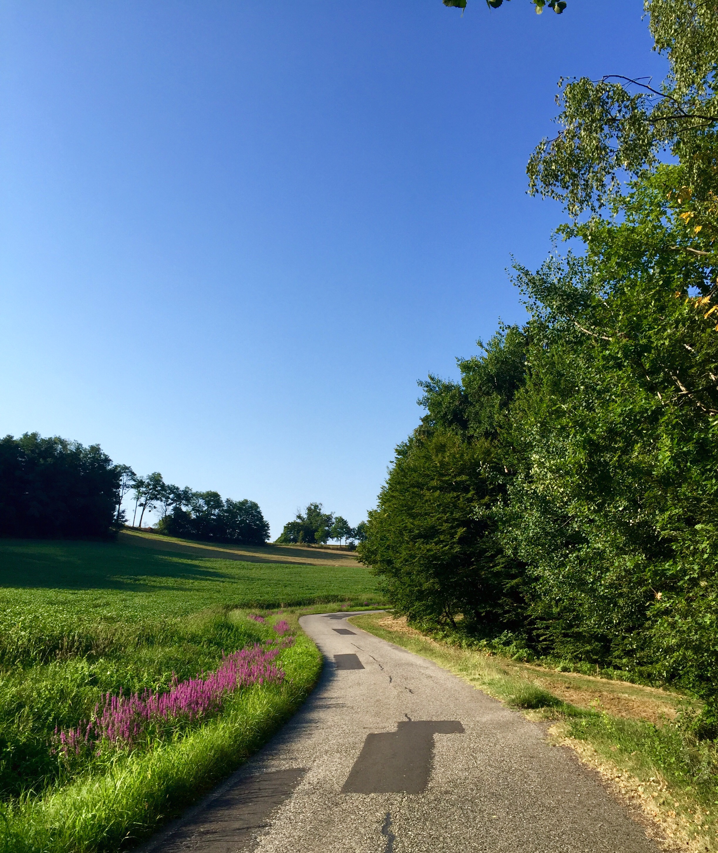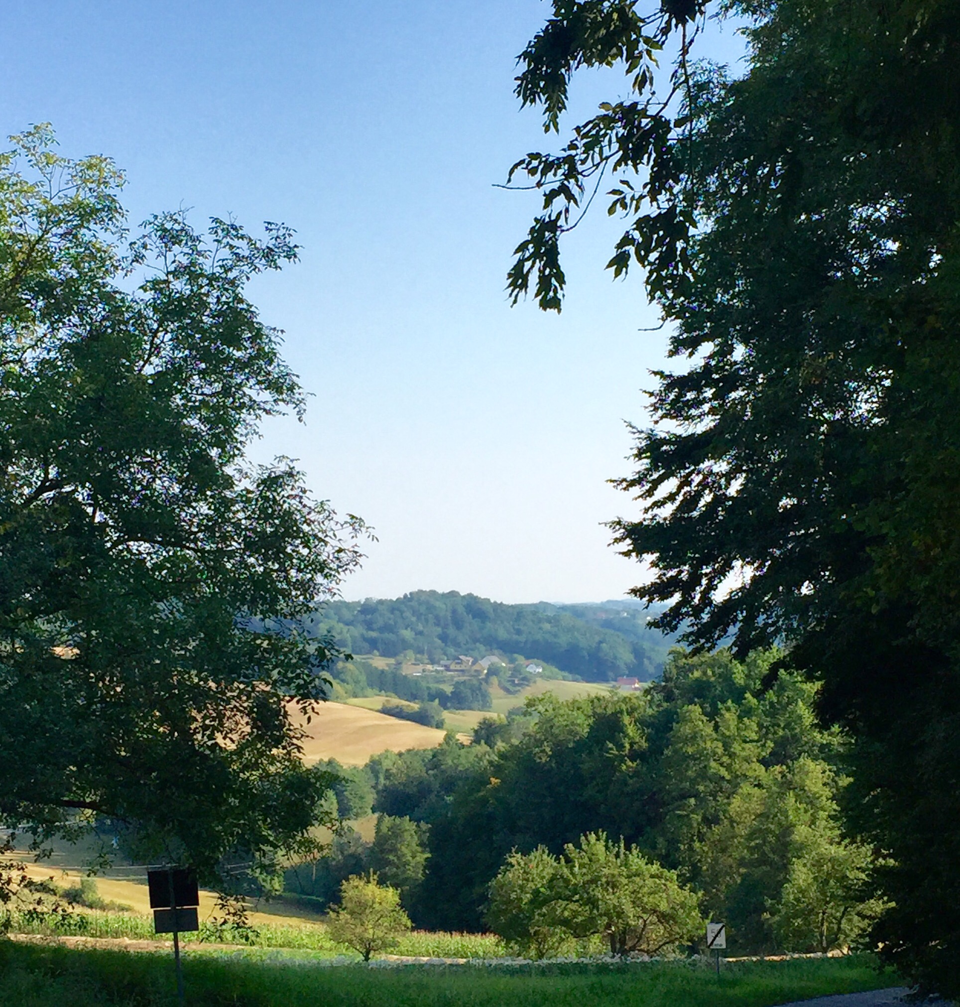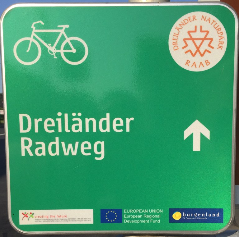 I have been hoping for an easier day and today I got it! A more direct route, slightly cooler weather (93 degrees), plenty of downhill and a strong riding partner (Frieder, the German university student I met yesterday) all made for fast travel. We set off in the early hours from Jennersdorf into the Dreilander Naturpark, a National Park that spans the borders of Austria, Hungary and Slovenia. The bike path (radweg) was well signed and took us through beautiful and hilly terrain.