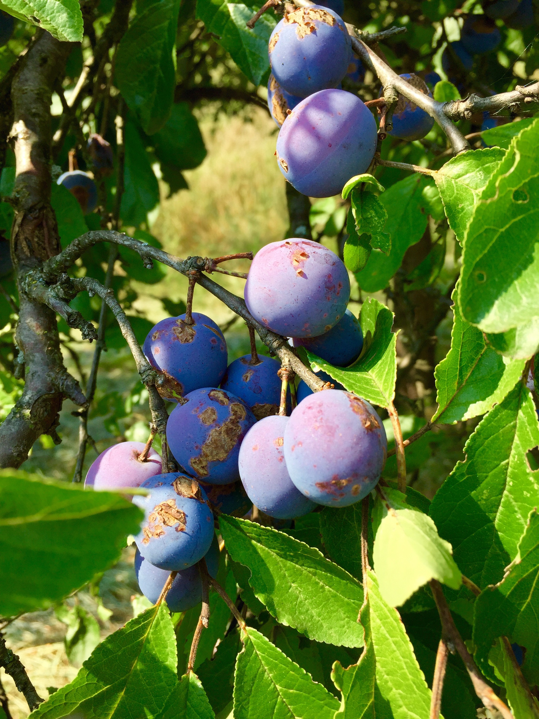 As we approached Maribor, on the edge of a steep vineyard, we found a row of plum trees with small purple fruit (smaller and sweeter than what I think of as Italian plums) and ate our fill, probably too many!
