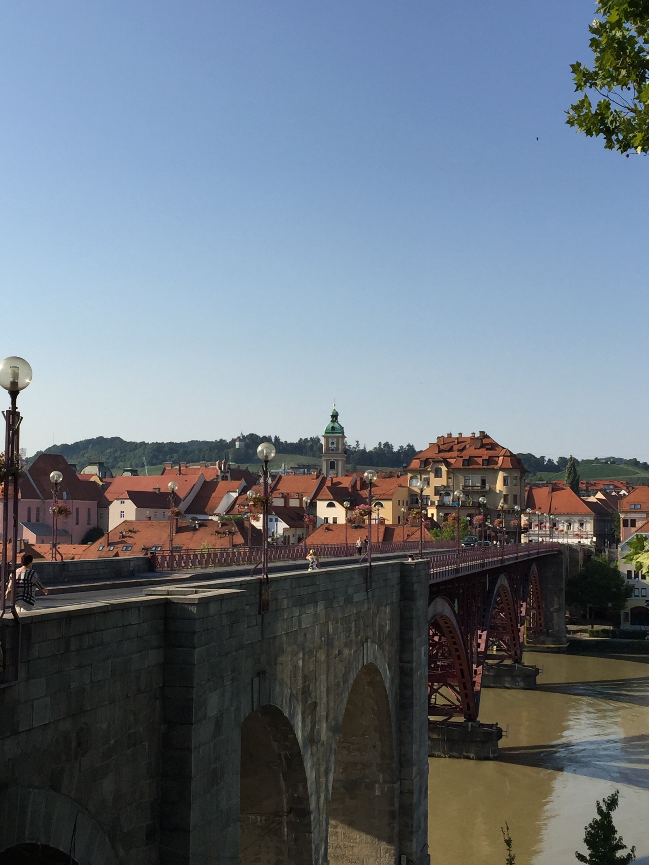 Crossing the Drava River into Maribor, I said goodbye to Frieder, a thoughtful and very good natured riding partner (his answer to everything seemed to be “why not!”), and made my way to the Pekarna Hostel, a nicely renovated building that was once a bakery, built at the turn of the century by the Austro-Hungarian army to supply bread for the nearby barracks. Because I arrived in the early afternoon, I had the luxury of spending the early evening walking around Maribor.