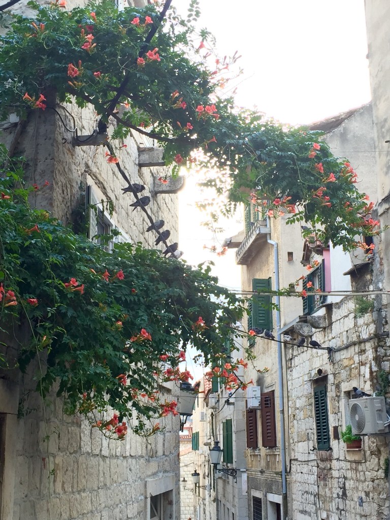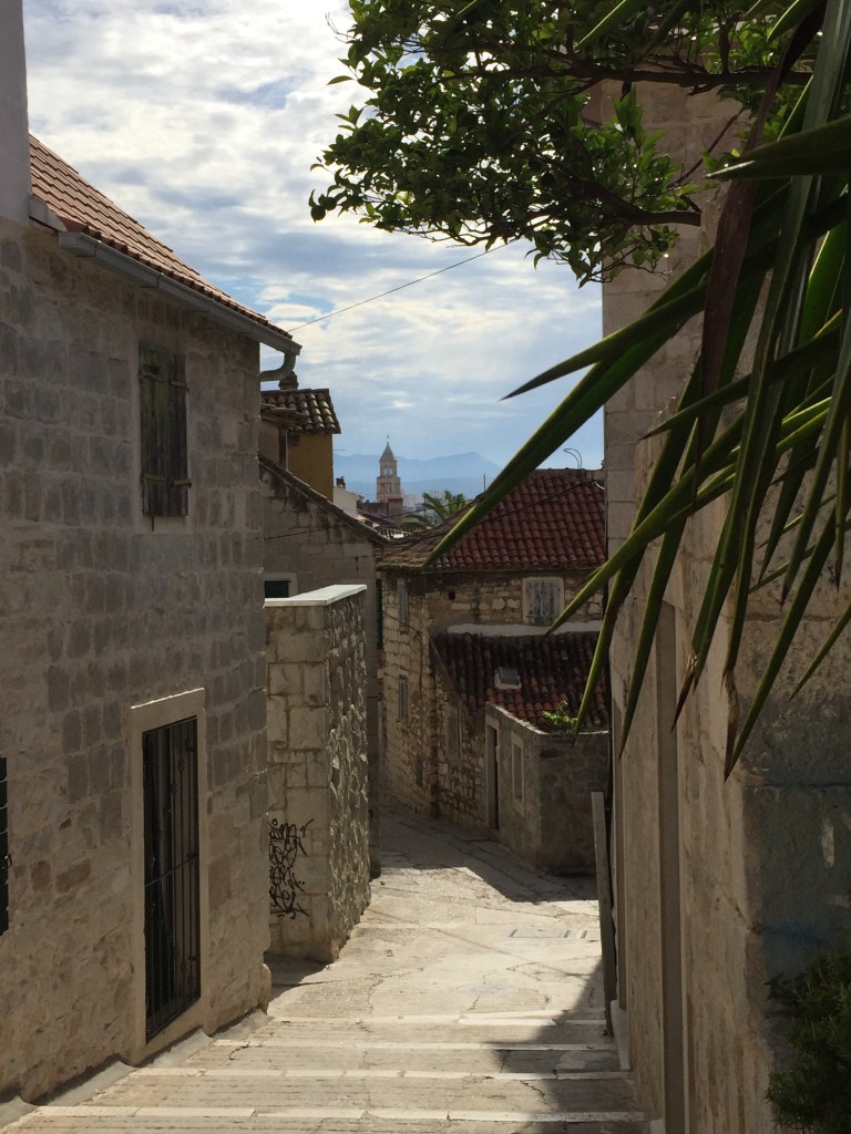 After 1,800 miles and 23 consecutive days of riding, my legs were ready for a rest. And what a place for a break! Split is a gorgeous city on the Adriatic Sea surrounded by high mountains (as I learned yesterday) and with a marvelous white marble and limestone walled city called Diocletian’s Palace that dates back 1,700 years to Roman times. It is, deservedly, a popular spot. I woke up, savored my morning coffee, gave my bike a good tune and then wished the little guy a restful day off and headed out to explore the city. Wow did it feel wonderful to just walk, breathe the ocean air and enjoy the pretty harbor, narrow maze like streets, food market and old town.