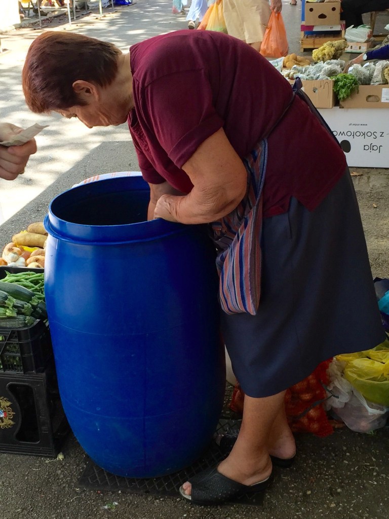 I am happy to report that, like a well-trained blood hound, I immediately found the old woman in the market selling homemade sauerkraut, out of a big blue barrel.