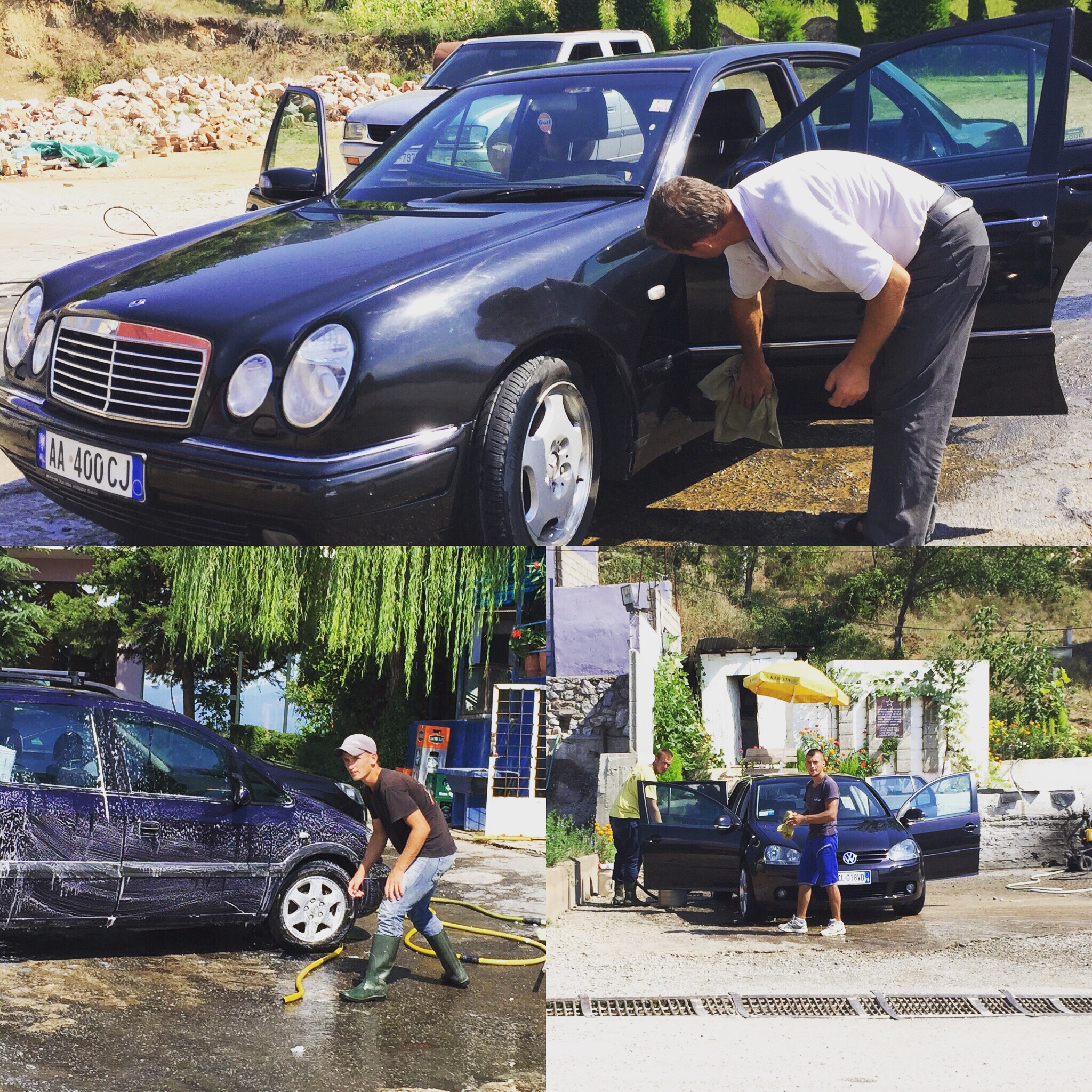 But perhaps most ubiquitous were the “lavazh” car washers, who were everywhere. Never, ever, anywhere, have we seen even a fraction of the number of car wash businesses as in Albania. In one very small town we counted 17, all small scale informal businesses, most announcing themselves with a hose spraying water straight up or in an arch into the street.