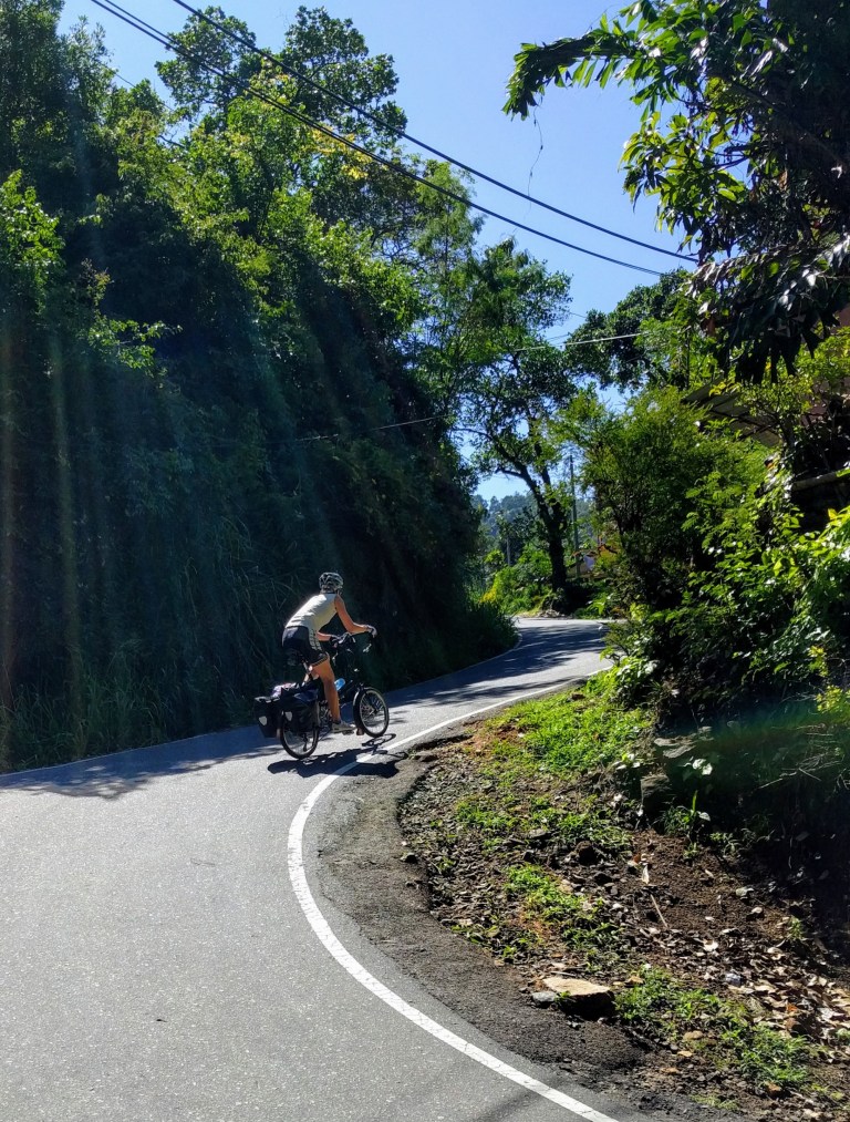 One particularly steep section of the climb gained 3,000 feet in six miles (10% average grade) up a narrow road that cut through forest and terraced farmland.