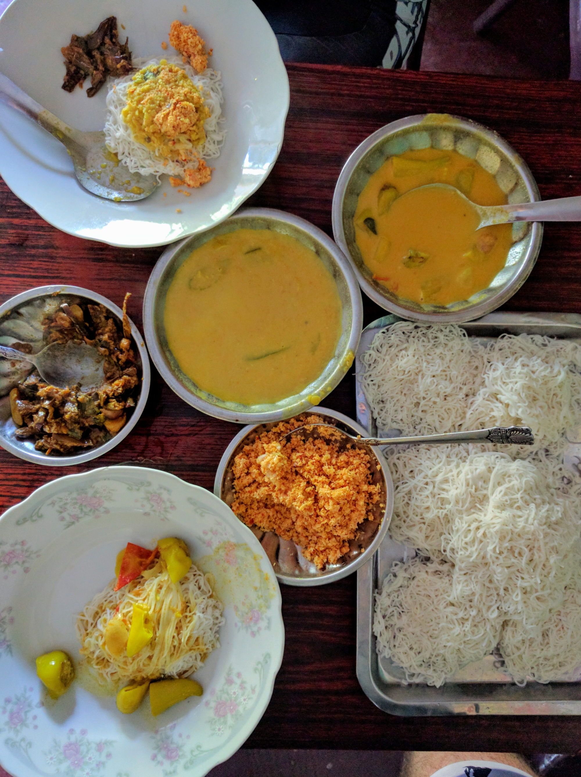 Along the way, we got lots of excited and friendly encouragement from little kids, many of whom wanted high fives, and enjoyed a delicious second breakfast of string hoppers with pepper curry, fried eggplant, dal, and coconut sambal.