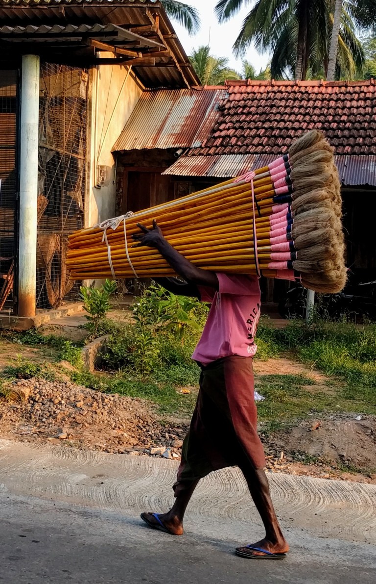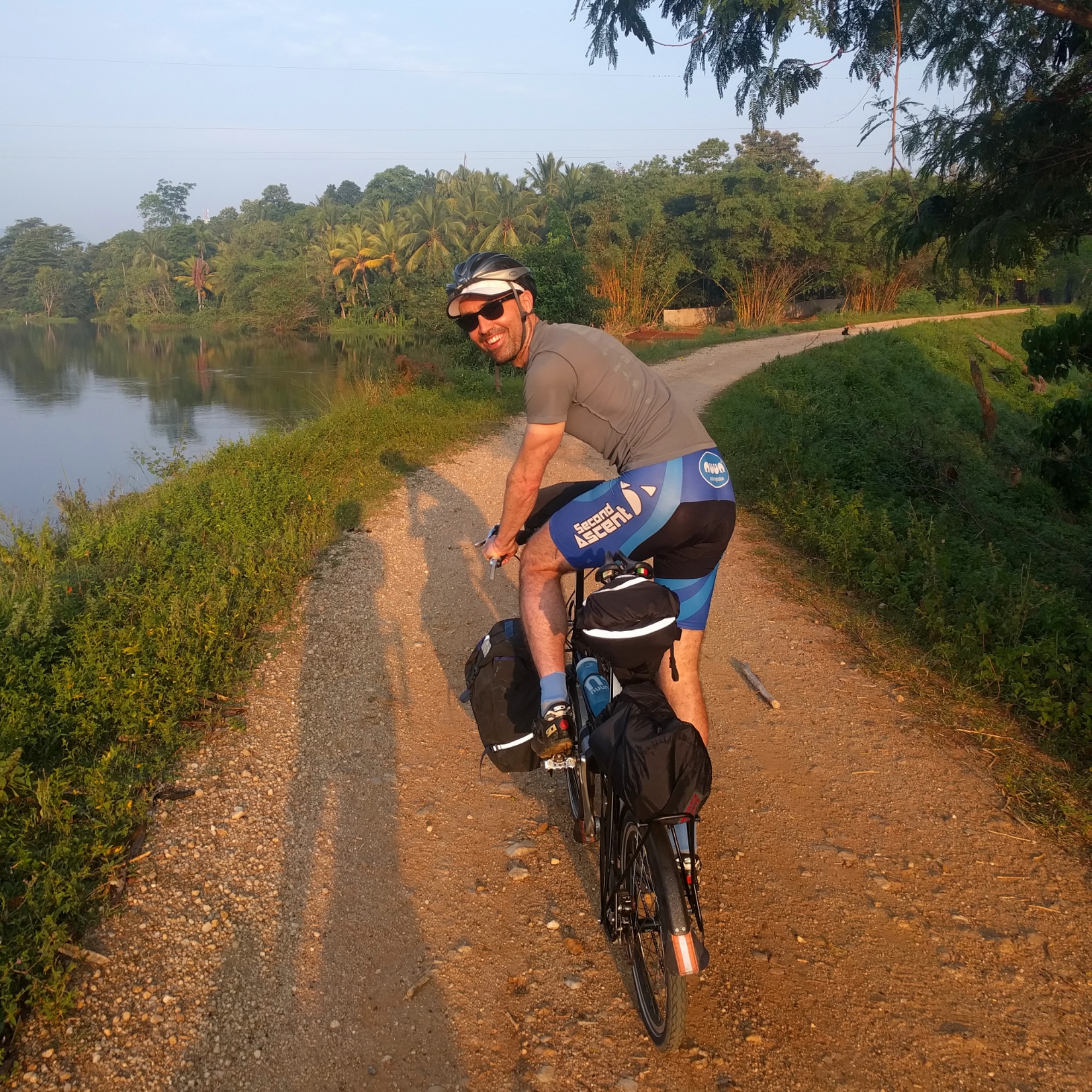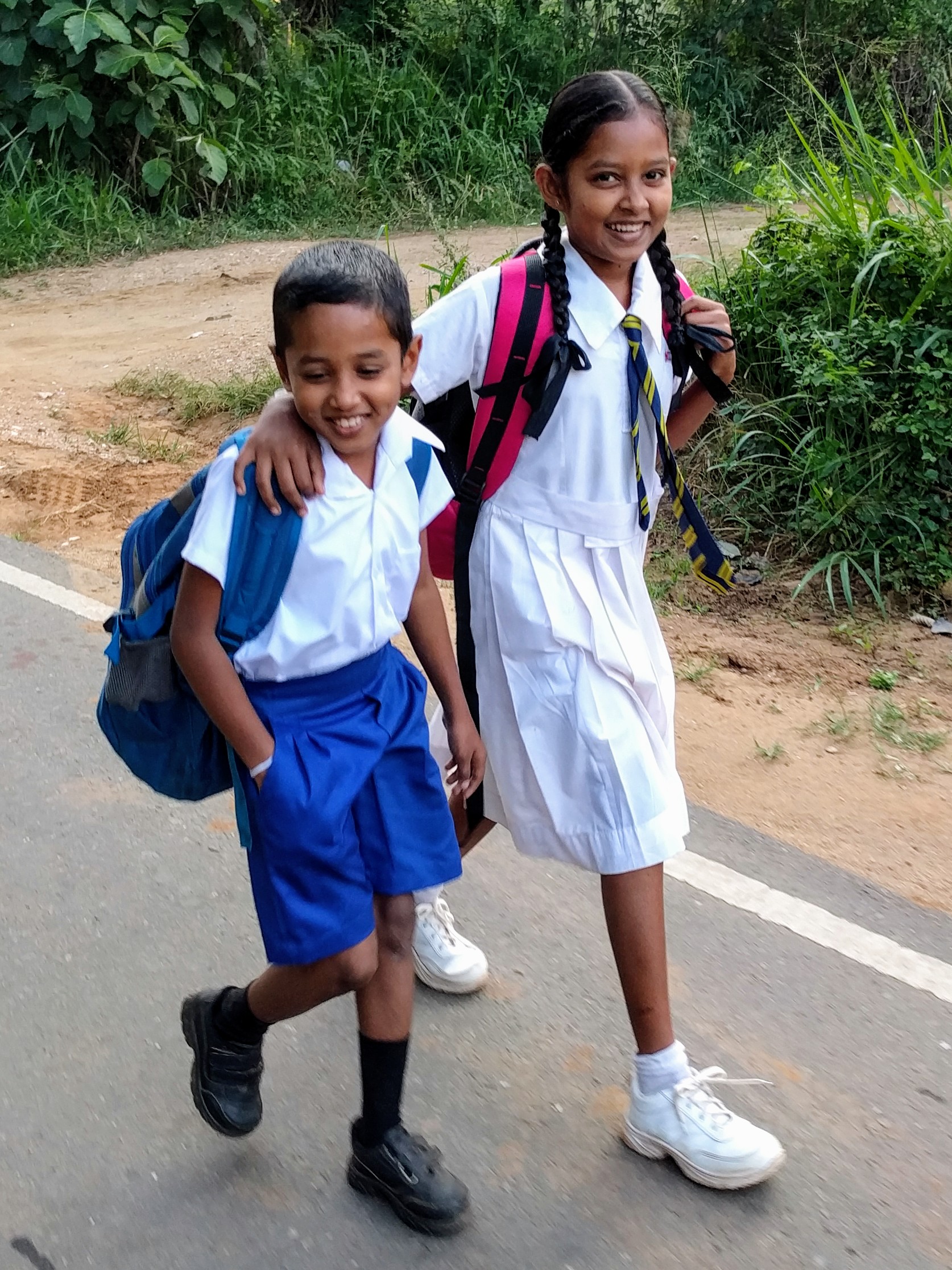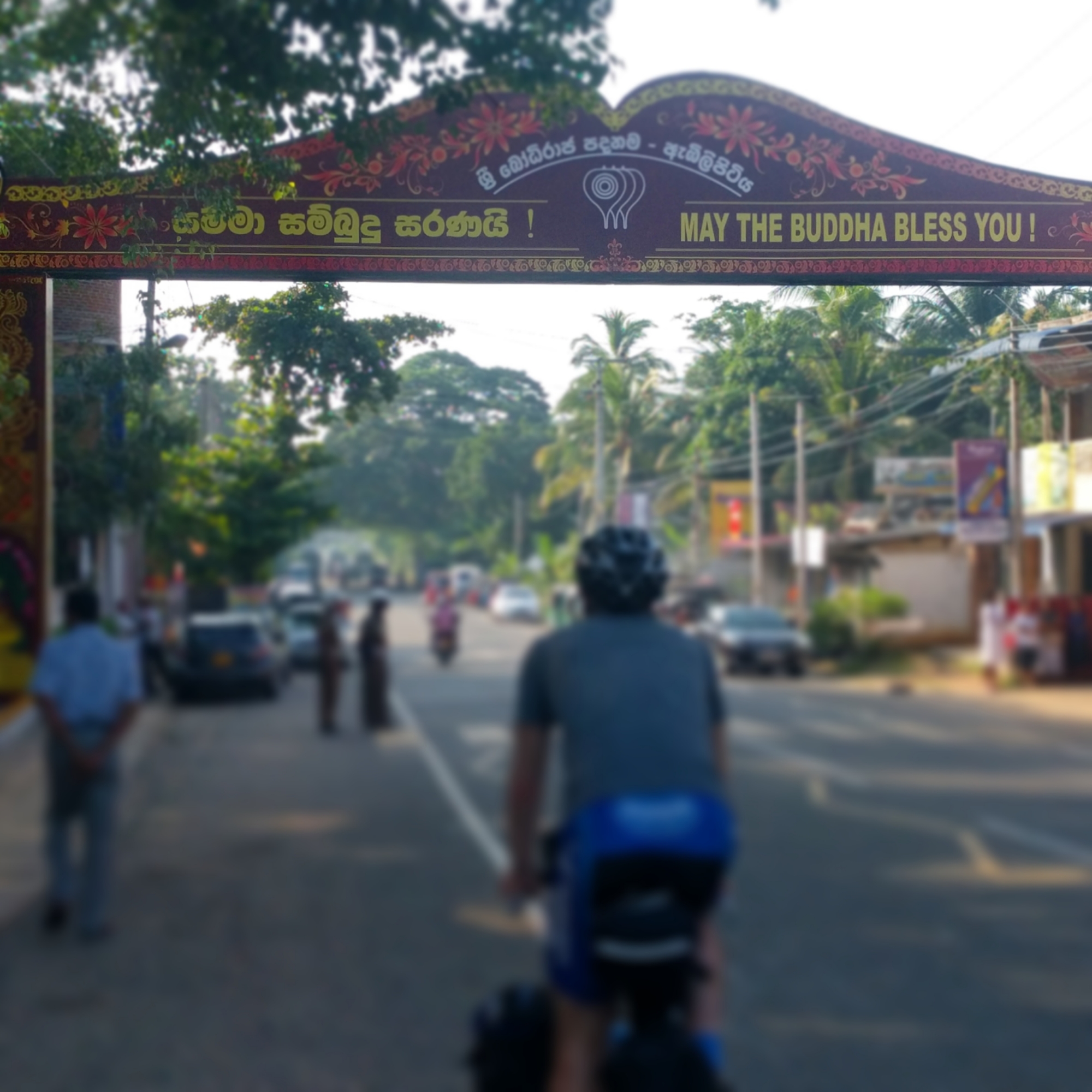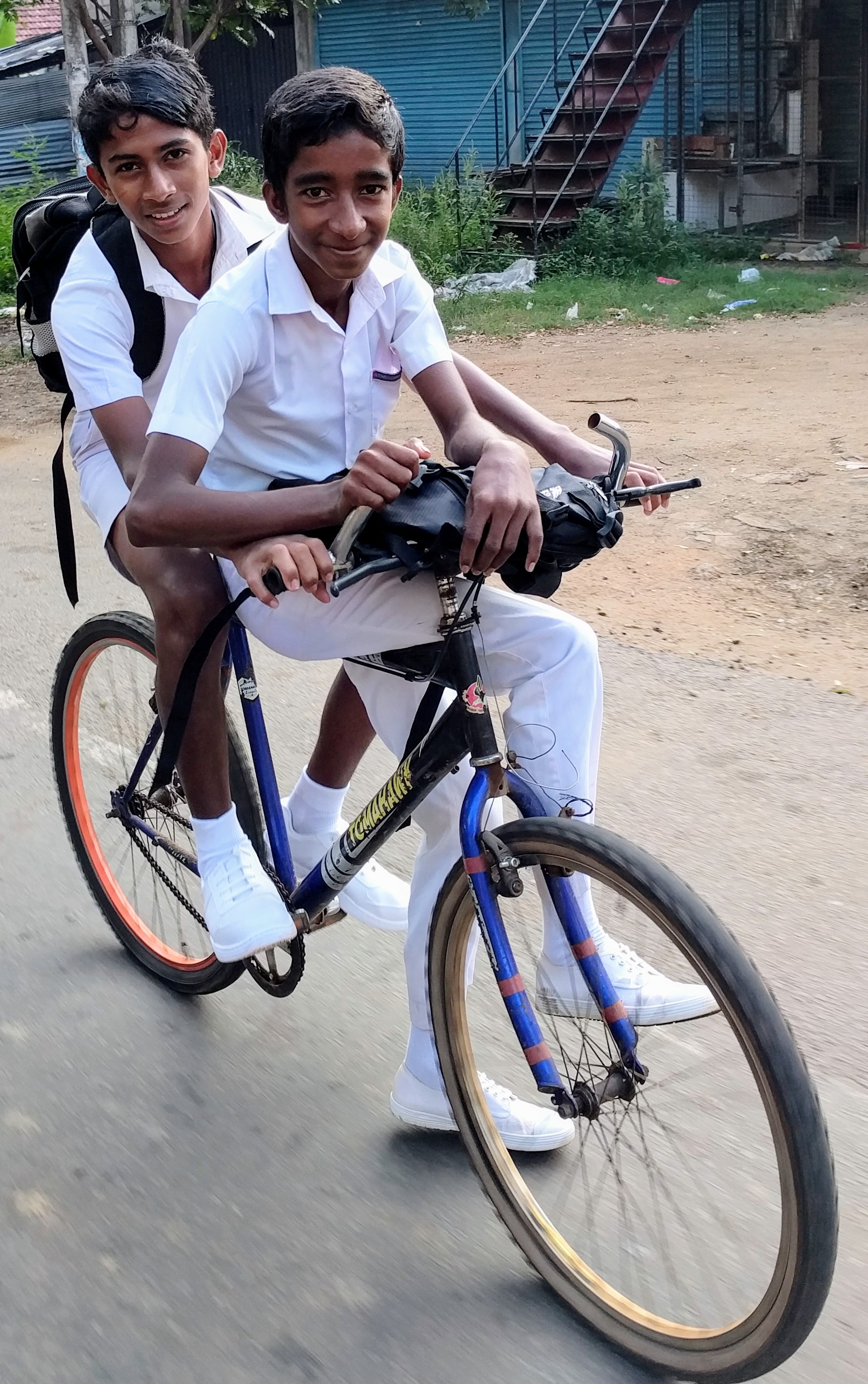 OK, back to biking! We left Udawalawe yesterday and followed a very pretty dirt track along a canal, where we watched turquoise kingfishers looking for breakfast. The day’s route gradually descended through rolling hills, the heat and humidity rising as we got closer to the Indian Ocean. Yesterday was the last day of school before a long weekend (every full moon is a national holiday in Sri Lanka) and the kids we encountered on their way to and from school seemed giddy with anticipation.