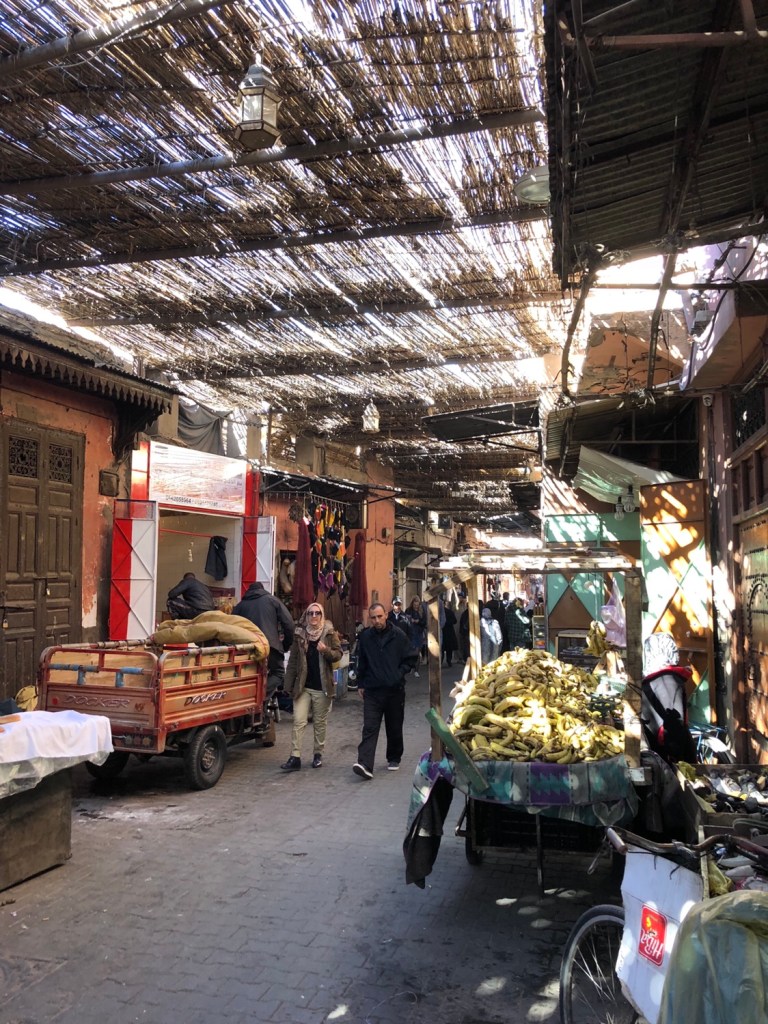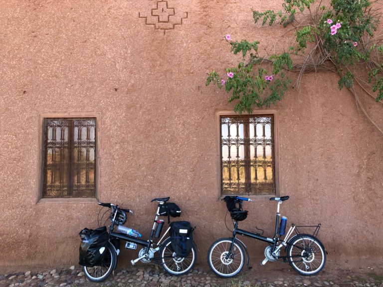After arriving, we spent a day in Marrakech, putting our bikes together and wandering the narrow and labyrinthine passages of the old city’s souks. We assemble our bikes, enjoy a delicious dinner at a food stall in the central market, and fall asleep at our riad, Palais Khum.