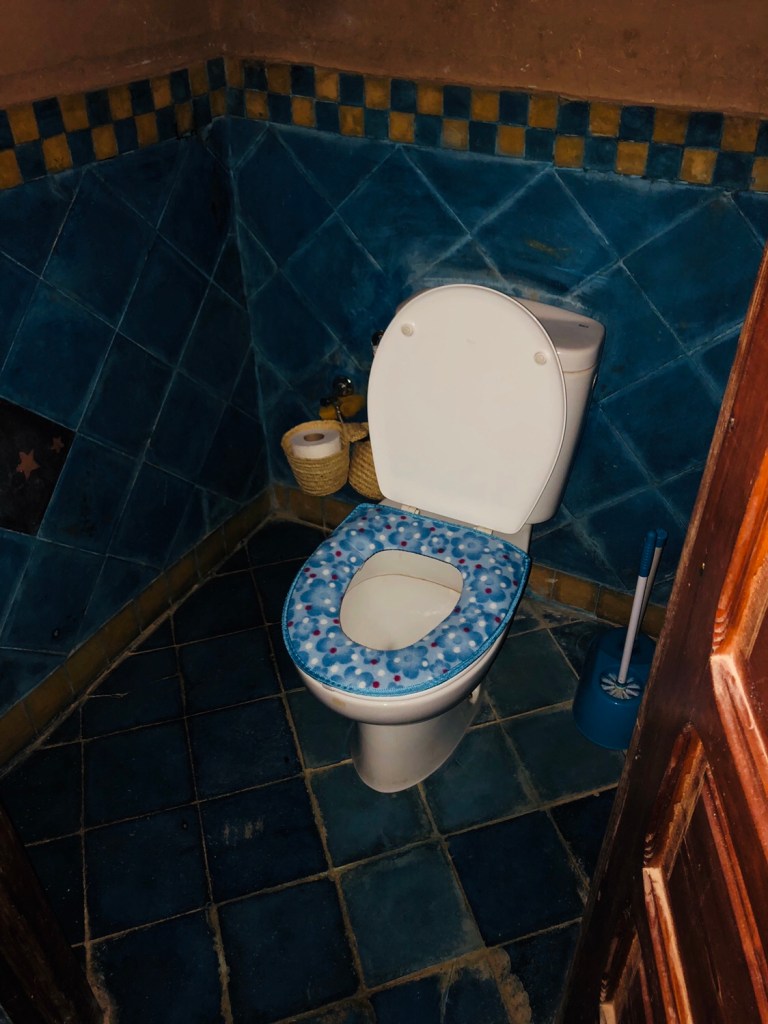 The architecture here is also highly responsive to the climate, with thick mud walls, seating areas insulated from the heat and cold with carpets and toilet seat covers that defy description.