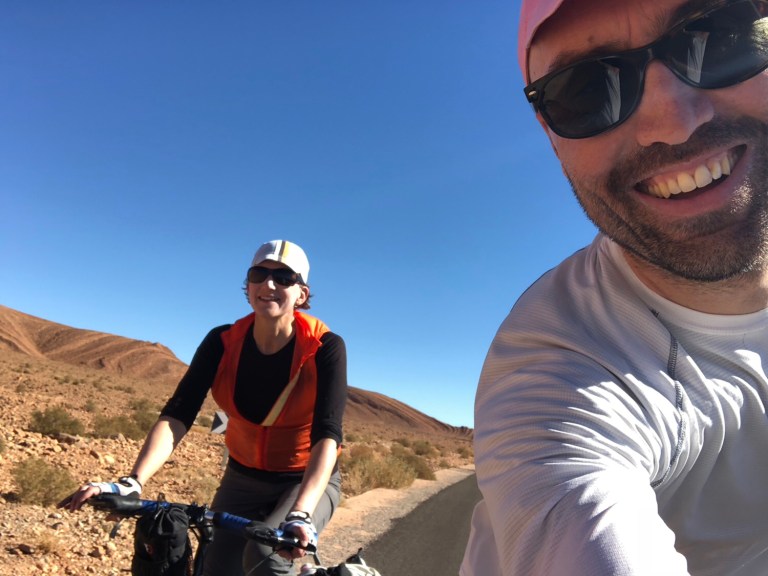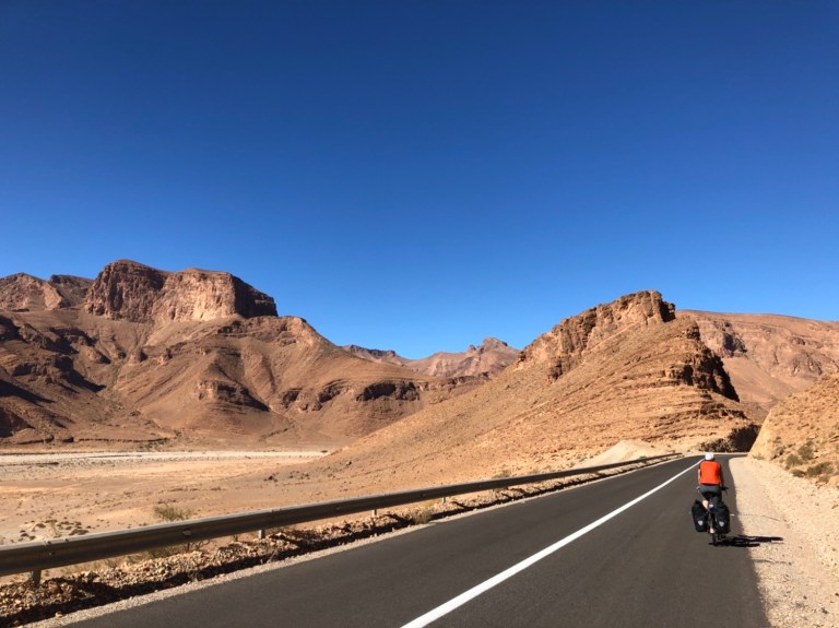 We reflect on our beautiful route today, and especially the warm hospitality we enjoyed at a small mud walled cafe in Imitek, whose proprietor brought us extra cardboard for our chairs and cycled off with a smile for fresh bread and oranges.