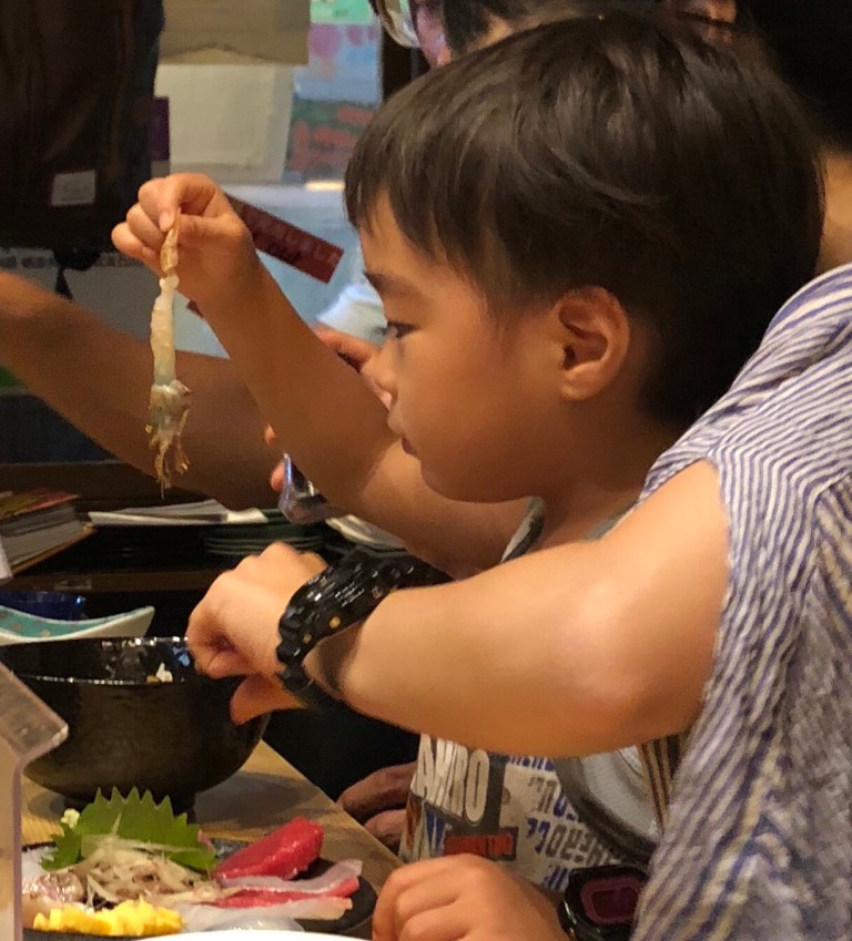 We were joined by this family, whose son was more focused on staring down the raw shrimp than eating them.