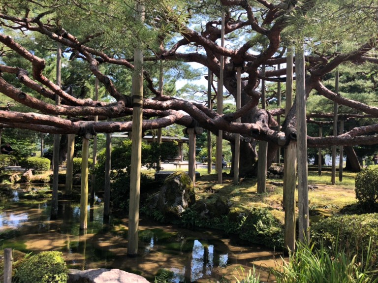 Fortified, we spend the day walking through the Kanazawa Castle and Kenrokuen Garden, where tree branches are meticulously supported to promote horizontal growth, and the downtown shopping district, where we happened upon an amateur (!) acappella festival, an Octoberfest in boisterous full swing (evidently getting a jump on it with the August date), and a hedgehog cafe. Yep, hedgehogs and coffee.