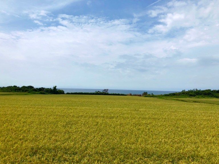 Setting off on our bikes, we find great infrastructure and a gorgeous seaside path that takes us into the countryside of the Noto Peninsula.