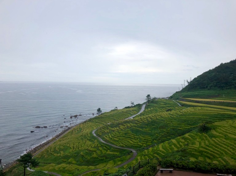Today’s ride takes us along the undulating and verdant coastline of the Noto Peninsula, around the tip and back towards the mainland of Honshu and the Japanese Alps. Like yesterday, we get intermittent rain through the morning, but given the tropical heat it actually makes for refreshing riding. The roads have remarkably little traffic and wind through small towns of black-tiled wooden houses with flower and vegetable gardens out front.