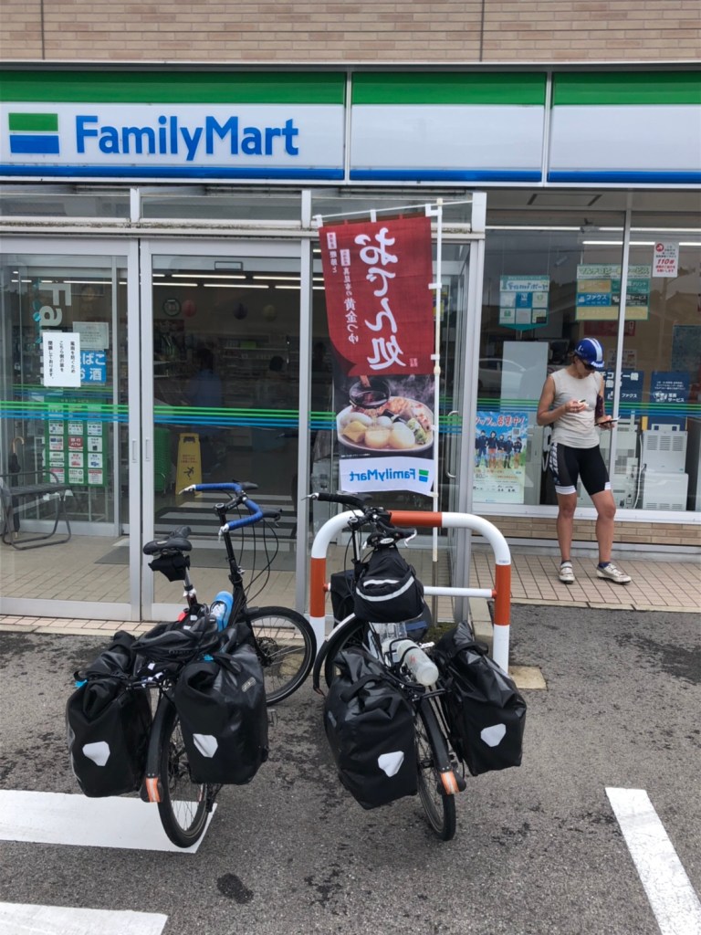 A final note on food. We are eating exceedingly well here, with great Japanese breakfasts of rice onto which a soft boiled egg is cracked, broiled mackerel, seaweed and pickles and elaborate dinners of sashimi, seafood hot pot soup, tempura and egg and seafood custards. That said, we periodically find ourselves at the Family Mart, a ubiquitous convenience store with free WiFi and delicious steamed sweet black sesame buns, pretty much the perfect ride snack.