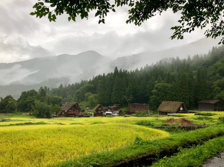After fueling up with egg sandwiches and plenty of Nescafé while watching the rain come down, we ride through the historic and well preserved “gassho” style village. Tucked into the misty forest, it has hints of the North Cascades.