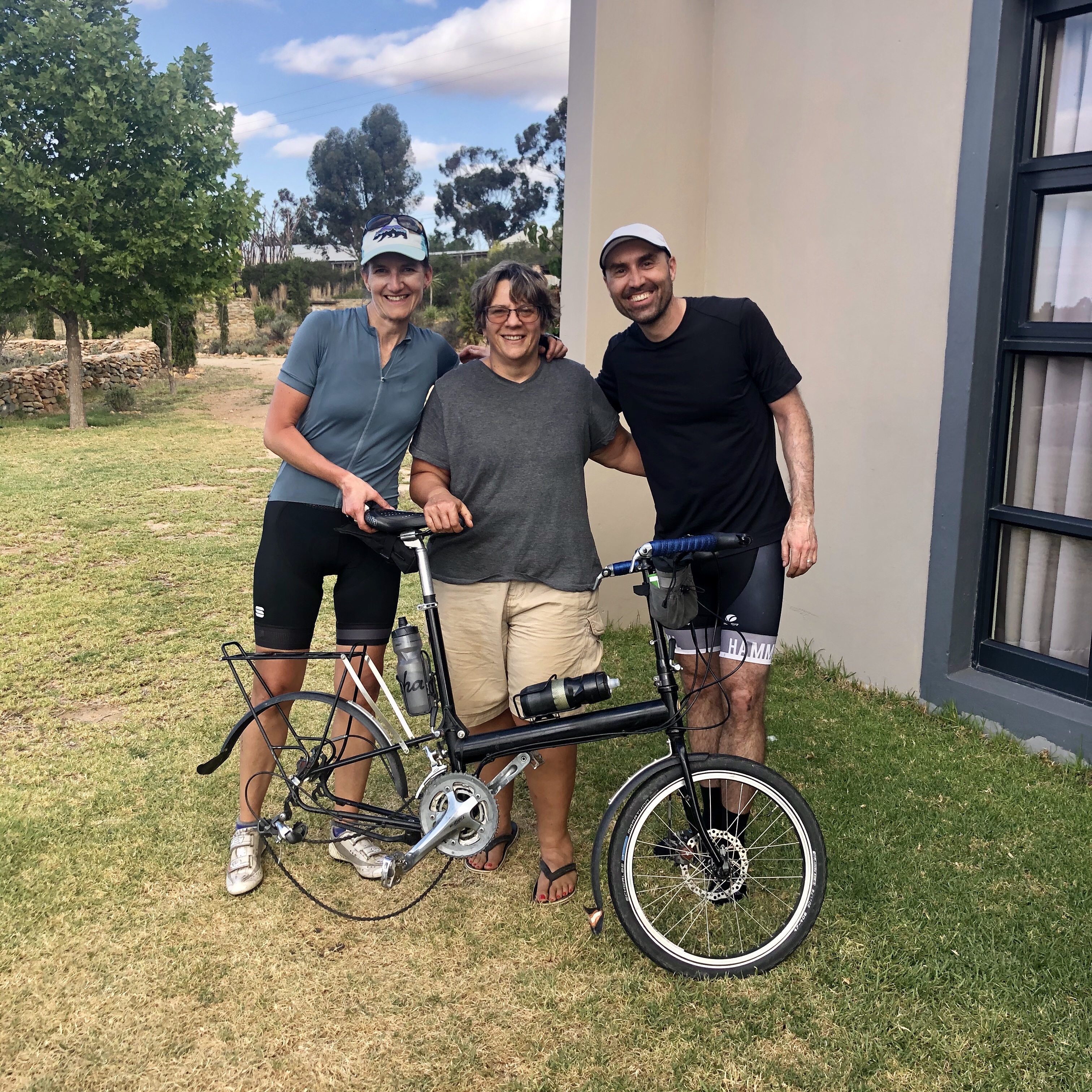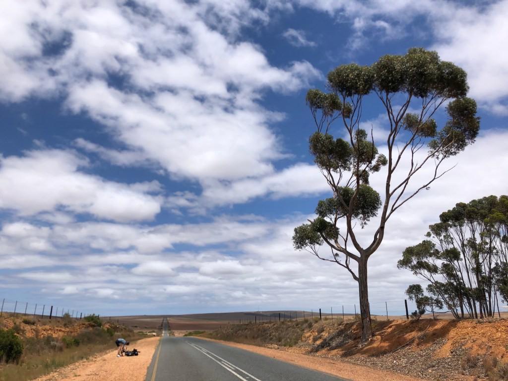 Sometimes flat tires bring good luck. In our case, that good luck came in the form of Teresa, a warm hearted and helpful woman in cargo shorts with a bike chain tattoo on her calf. Just short of Napier, after a long day’s ride, Allegra’s rear tire failed completely. Not a punctured tube, which happens often enough. A fatally blown out tire with the metal bead partially dislodged.