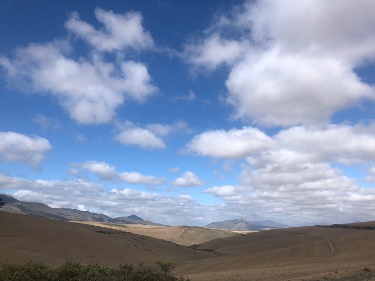 After a delicious breakfast, our hosts very generously gave us a “bucky” (truck) assist down the long dirt road. We said our farewells, feeling happy and inspired, and started to pedal towards Cape Town.