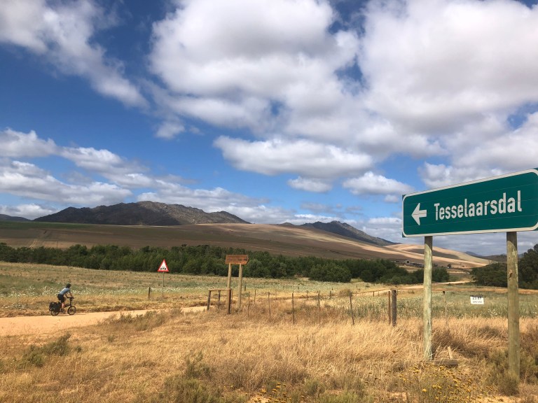 We saved the best for last. After a delicious new year’s breakfast of homemade bread, avocado and granola in Napier, we continued west into the beautiful countryside of the Western Cape towards the little town of Tesselaarsdal. I don’t know the origin of the name Tesselaarsdal, but as we rode I imagined it being Afrikaans for “small village at the end of a very long, hot and bumpy dirt road.”