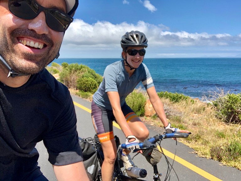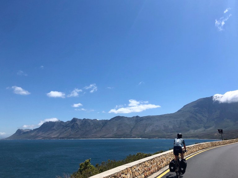 The final 30 kilometers of our ride was along the eastern coast of False Bay, on a road that hugs the coast, with dramatic cliffs and turquoise water, and is nothing short of spectacular.