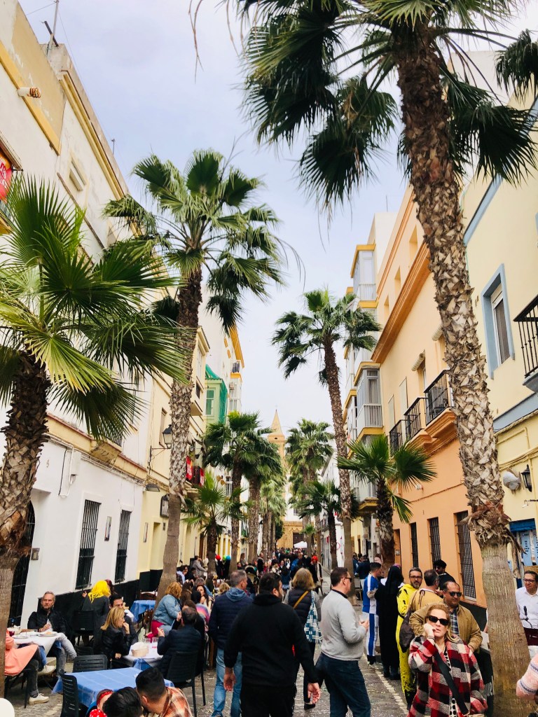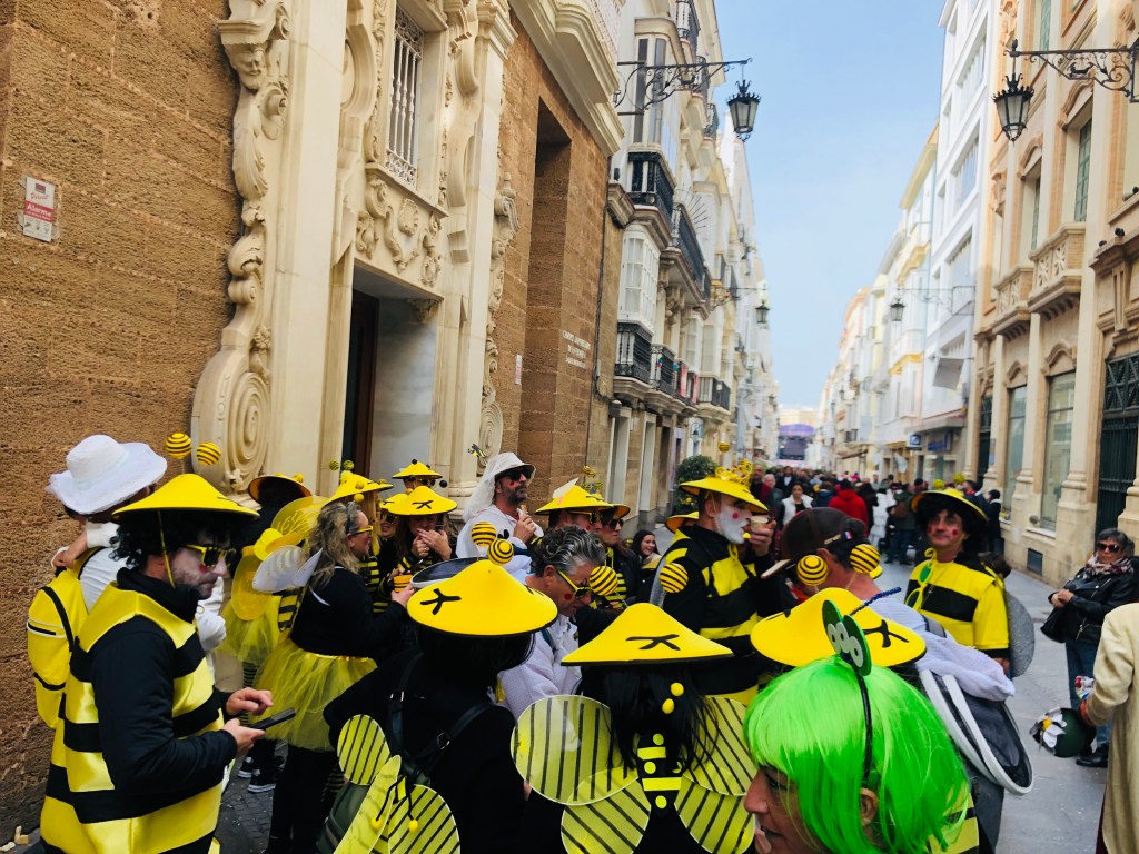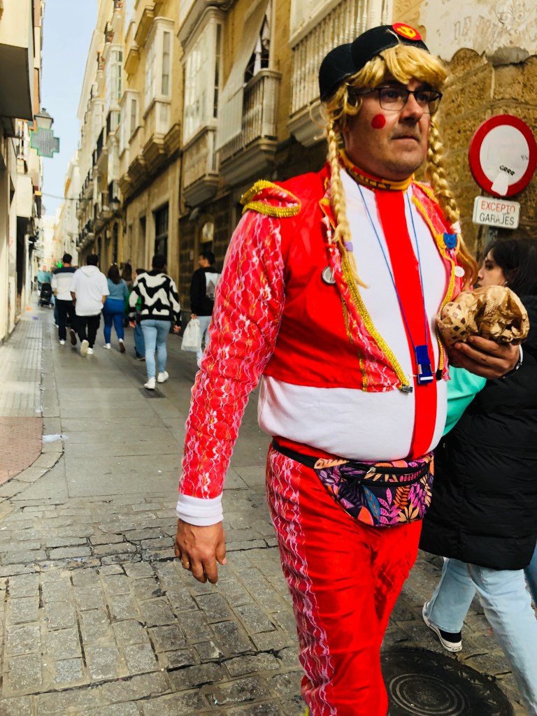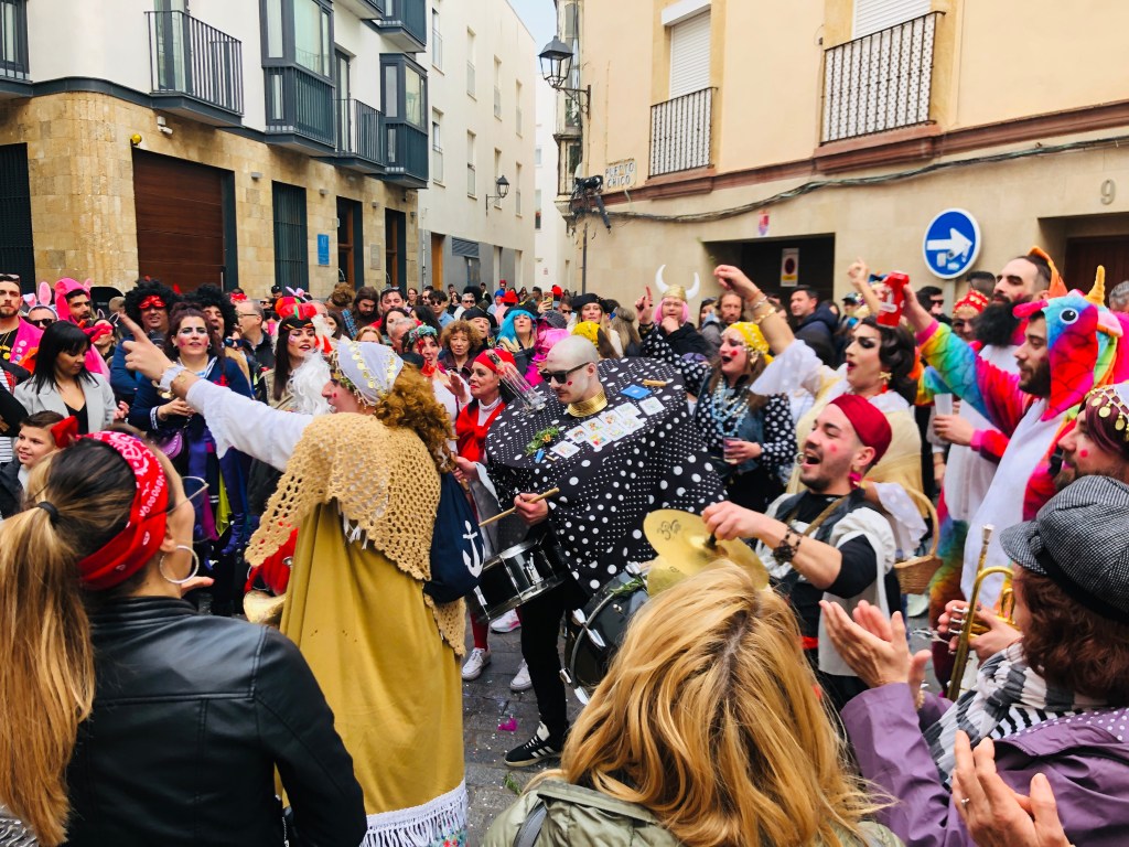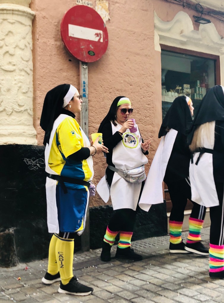The Carnival de Andalucia celebration seems to be following us and we realize that what we experienced last night in Arcos was a modest block party compared to the party Càdiz is throwing this weekend. In the late afternoon, we join the festive crowds in the narrow streets of the historic quarter. Every block there seems to be a different amateur musical group, many very good, wearing elaborate costumes and singing funny songs which generally seem to be about breaking Catholic taboos (lots of nun jokes) or the joy of Carnival. It’s a delightful and entirely unexpected way to spend the afternoon.