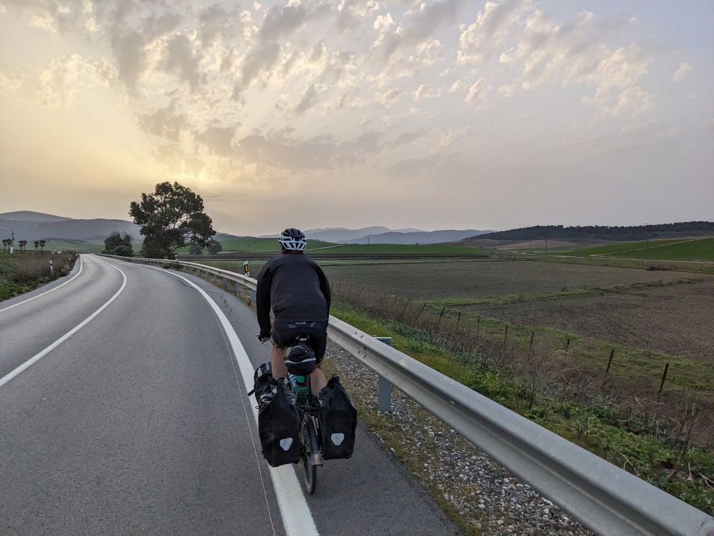 The ride out of Benelup Casas Viejas is everything we could ask for: fresh legs after a good night of sleep, a quiet winding road on a beautiful crisp morning with the sun rising above the horizon, light brown Asturian mountain cattle at pasture accompanied by white egrets, dark green acorn trees and lakes. The kilometers click by and we feel the freedom and joy of being out exploring the world on two wheels, just the right speed to notice small details, hear the bird song and smell the eucalyptus and flowers.