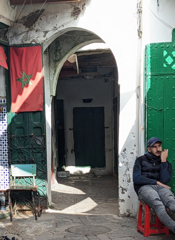 The transition from Spain to Morocco hits us immediately. Not only is the average income level lower (less than a quarter of Spain’s) and the population younger (average age 15 years younger than Spain), Morocco simply feels more foreign and chaotic to us, in many ways wonderfully so. Street and traffic patterns, to which we pay so much attention as we find our way through different towns and cities, confound us. In certain places the streets are four lanes wide, virtually empty of cars and attended by street sweepers every few blocks and in others they are barely a lane wide and packed with every manner of transportation imaginable. Beautiful bus stops sit empty but busses disgorge dozens of passengers in unmarked locations. In some cases the street grid literally turns into a goat path and in others suburban streets double as sheep pastures.