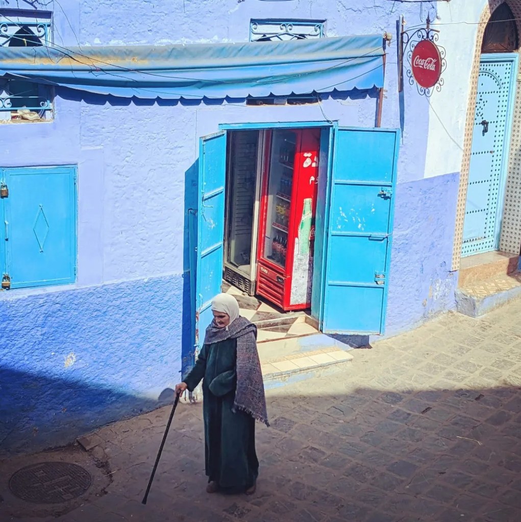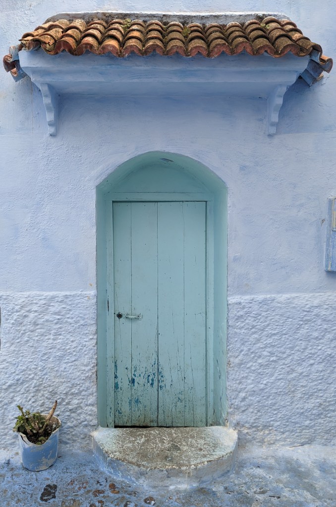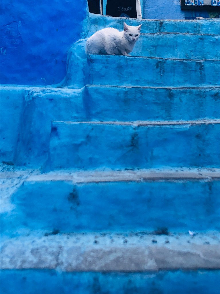 The old town of Chefchaouen feels like an abstract maze, building after building painted a different shade of blue, all constructed haphazardly along narrow cobblestone passageways that fork off at irregular angles, dead-end unexpectedly and climb and descend the hillside via uneven staircases. Walking around, we end up going in circles before eventually finding the main plaza. It’s a captivating experience.