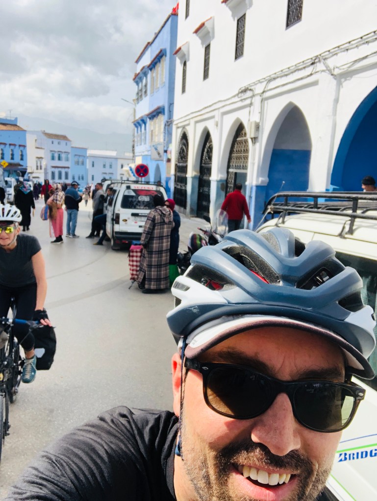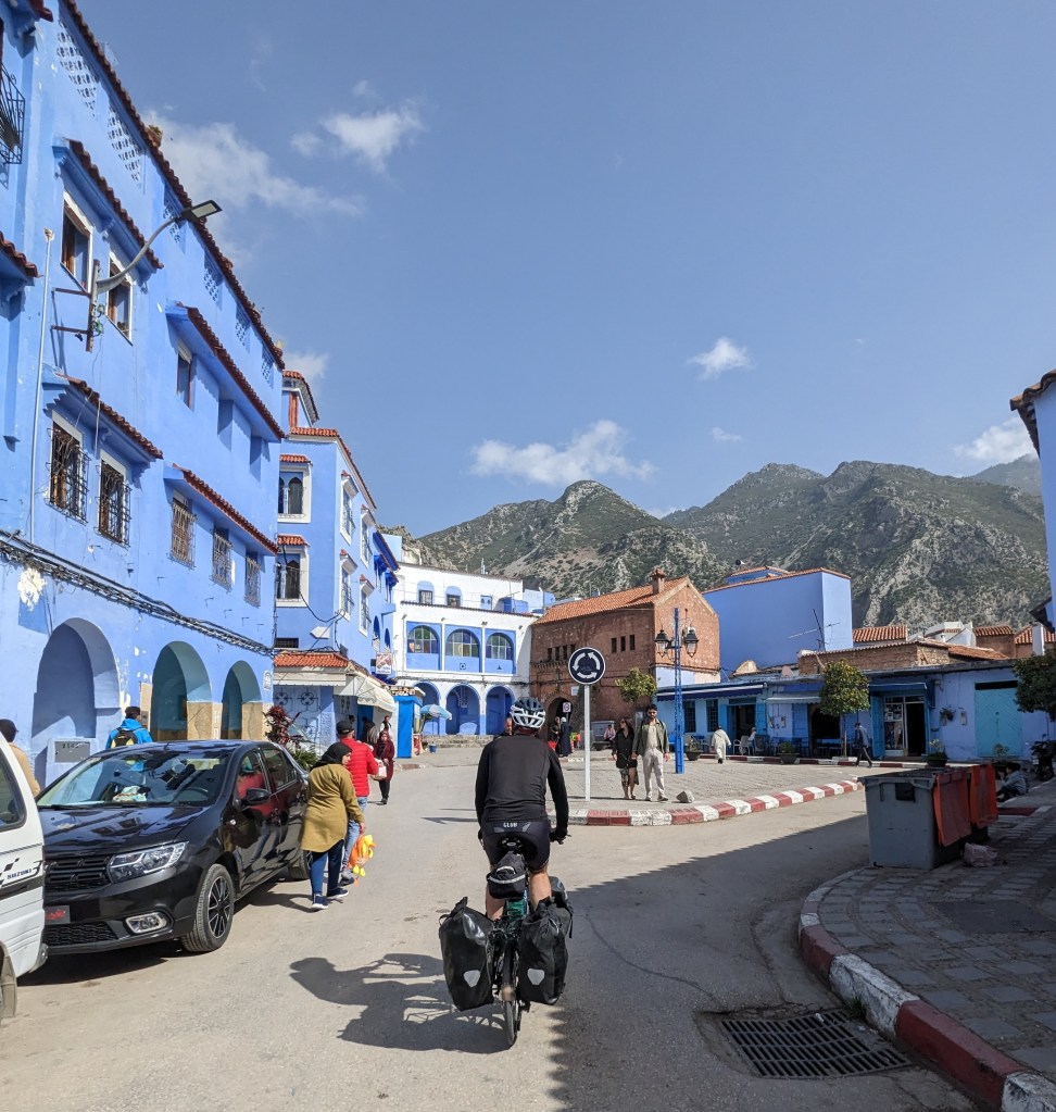 Chefchaouen, a small town in the mountains, is known for the blue painted buildings of the old town. It’s a bustling and picturesque place. As we ride the steep final 6 km into town, the lively and somewhat chaotic energy of the Moroccan street once again envelops us. Pedestrians walk confidently and blithely into the street (right in front of us) without looking, cars roll blindly out of driveways (right in front of us) and trucks stop wherever convenient (right in front of us). It’s a very different and much more democratic understanding of what a street’s function is and it’s actually kind of fun anticipating and dodging obstacles, but it does take some getting used to.