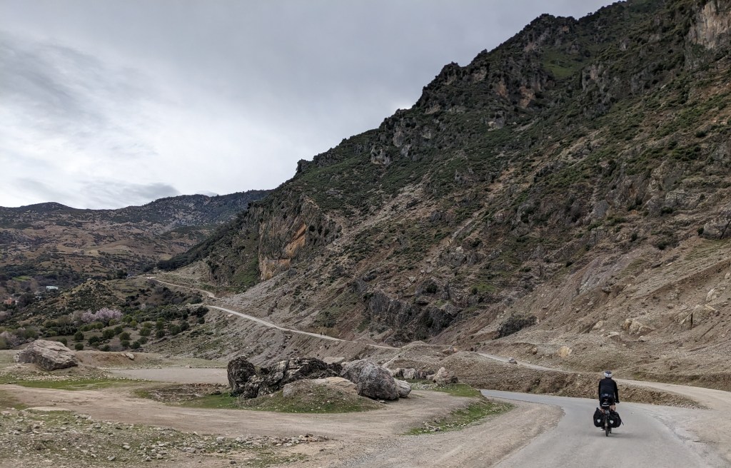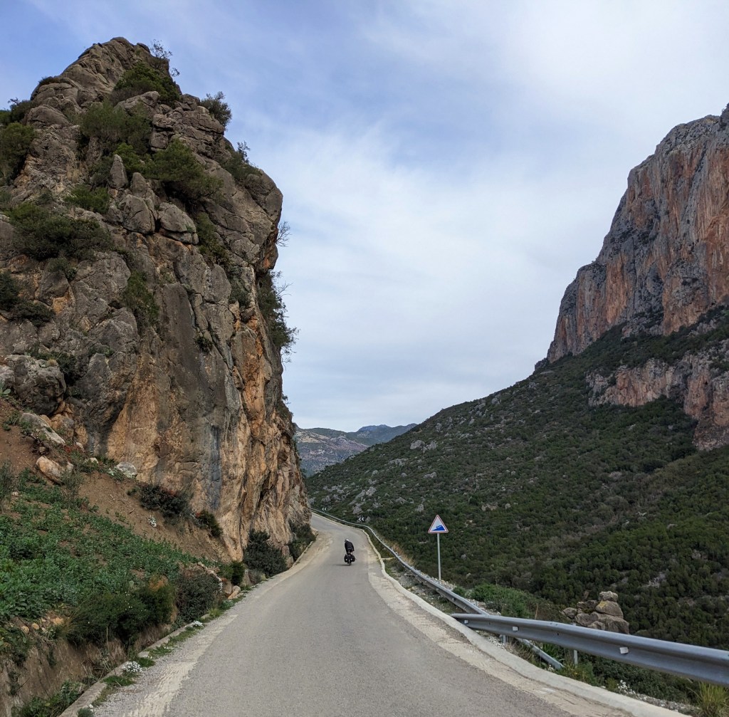 We arrive in the small seaside town of Oued Laou and (because we have a ferry to catch and unfortunately can’t just keep riding south to Cape Town) hire a taxi to give us an assist back to the Morocco-Spain border at Ceuta. Our driver, as with so many people here, is warm and helpful despite us having almost no shared language. He seemed touched that we shared our almonds with him and decided to reciprocate. Have you ever had a taxi driver take a detour to buy you a plate of couscous with chicken and vegetables from his favorite stand?