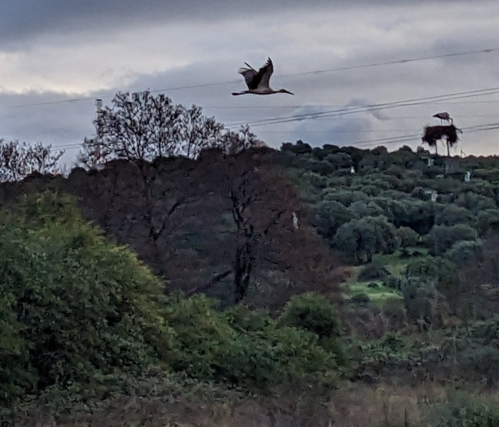 Like most Spanish towns, Algeciras is compact. We quickly transition from urban to rural and are delighted to see a few dozen black and white common cranes that have built massive nests in trees and on power poles. They look almost prehistoric and make a high pitched squawking sound that somehow seems slightly incongruous with their majestic stature.