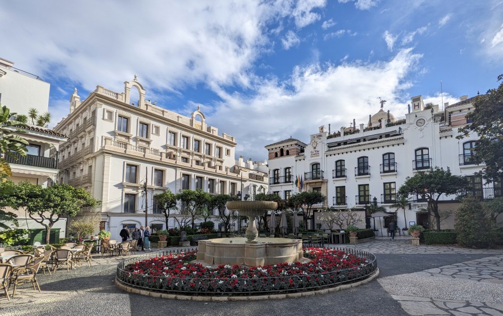 We arrive in Estepona, which might be the quaintest of them all, and find a lovely hotel on the main square. Despite being dusty, scruffy (in my case) and a little wind blown, we are warmly welcomed into the lobby, the bikes are taken to a back room, and we enjoy a cold beer and peanuts.