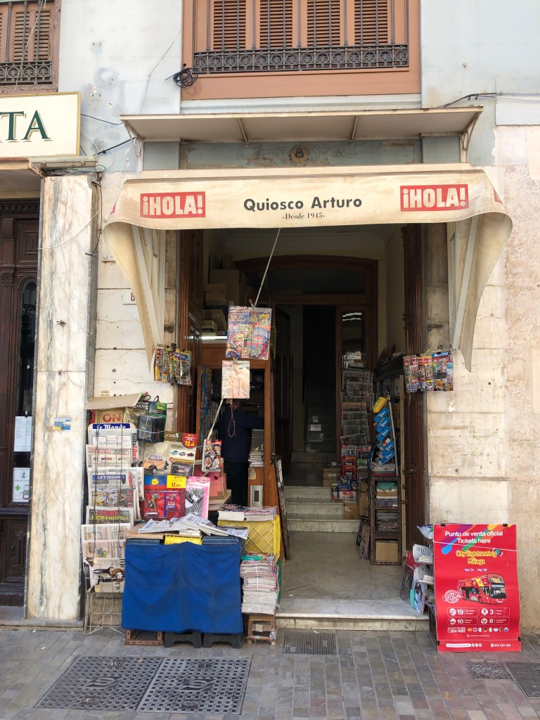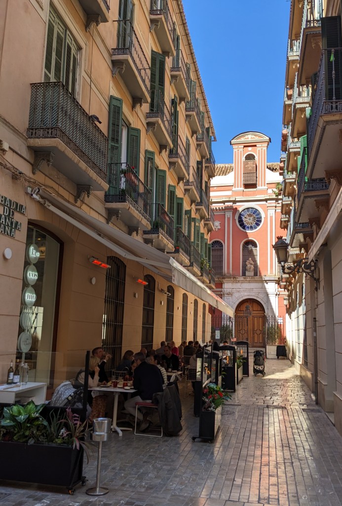 We clean up and take a stroll through Malaga’s historic city center, which is packed with tourists enjoying drinks and midday meals al fresco on the pedestrian only streets. The old buildings are ornate and beautiful, while still being contemporary in their use. As we stroll under the blue sky and palm trees, we enjoy the worn, polished feel of the cobblestones and tiles on the pedestrian streets. How many footsteps over the years must it take to wear cobblestones down to a shine?