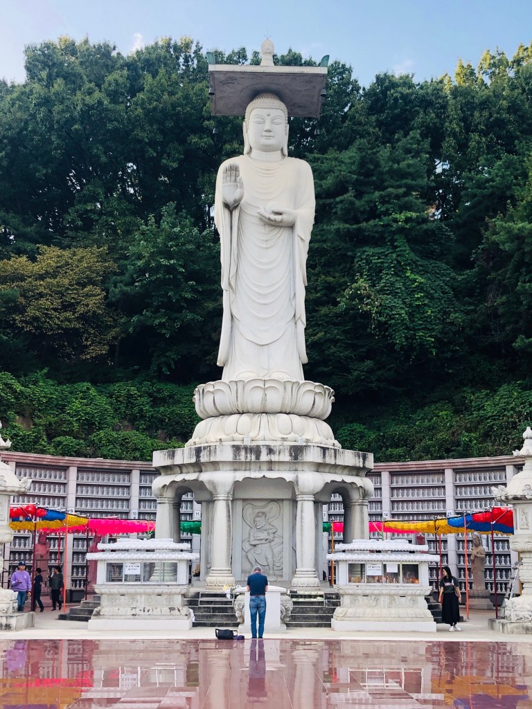 Back in Seoul, we visit the remarkable Bongeunsa Buddhist temple, founded in the year 794 and still going strong. Right in the heart of Gangnam, one of Seoul’s trendiest and busiest commercial districts, and surrounded by office and hotel towers, Bongeunsa is a peaceful oasis of trees and ornate shrines. We spend time sitting in the main hall, under the watchful eye of a large golden Buddha, as followers, both Korean and foreigners, perform prostrations and make offerings.