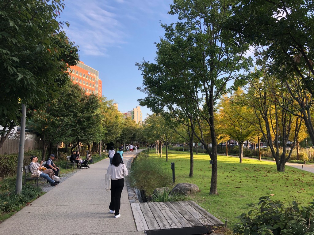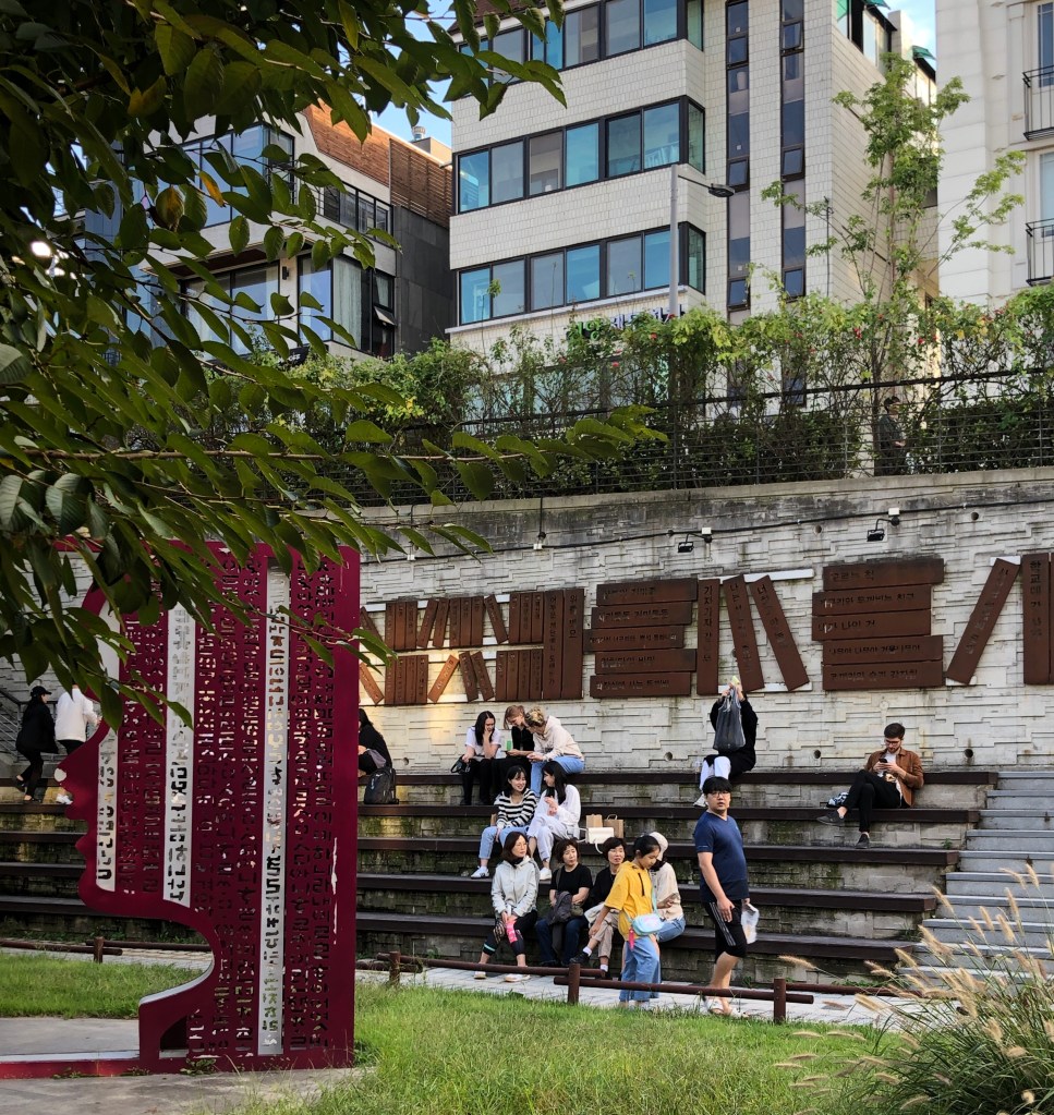 Our remaining time in Seoul is spent exploring different neighborhoods and we are struck by the massive scale and 24/7 vibrancy coupled with the clean and safe livability of the city. Sidewalks are packed with people, retail shops blare music and rise three and four floors levels above ground, massive advertising screens bathe the streets in bright lights and images of Korean celebrities. And counterbalancing the almost frenetic urban energy are an extensive and easy to navigate public transit system, well maintained parks, tree lined walking streets, wide sidewalks and bike lanes, play areas for kids and exercise stations for adults, benches placed thoughtfully amid flowers for people to sit and rest, clean working drinking fountains and bathrooms everywhere.