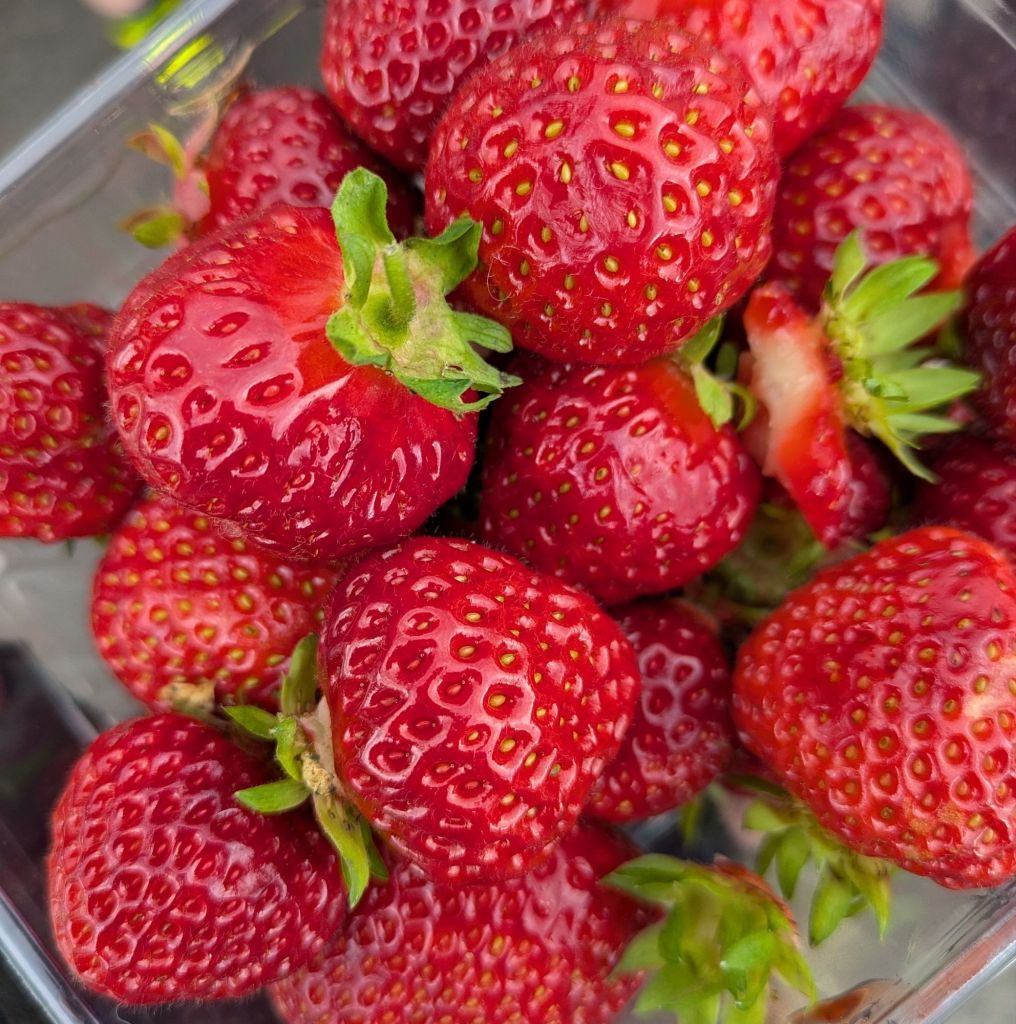 We reach the high mountain valley after a few hours, hungry and legs weary and minutes later pass a cheerful cyclist fixing a flat. He has thinning white hair, silver rimmed glasses and a sparkle in his eye. Ahead, he tells us, are the best strawberries you will ever have in your life. He was right. In the middle of nowhere, a strawberry patch, a farmstand, a few farm houses and a small stone church. We buy strawberries, kale and kohlrabi, all of which we devour.