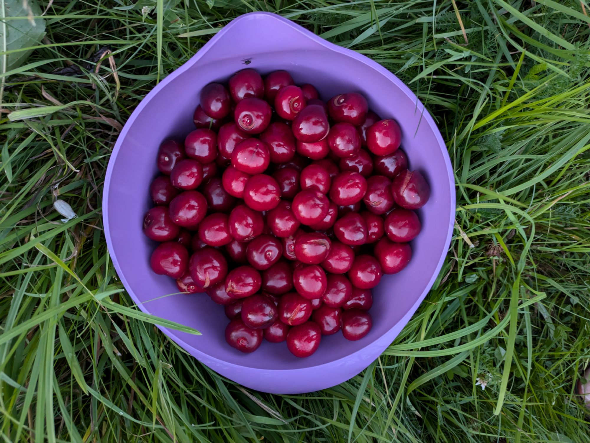 As dusk approaches, the clouds dissipate and we get fleeting blue skies at 9:30 pm. Peter tells us their cherry tree is having a banner year, so we wander outside and pick cherries to round out the evening. It’s wonderful to be in the company of friends and to feel so welcomed.
