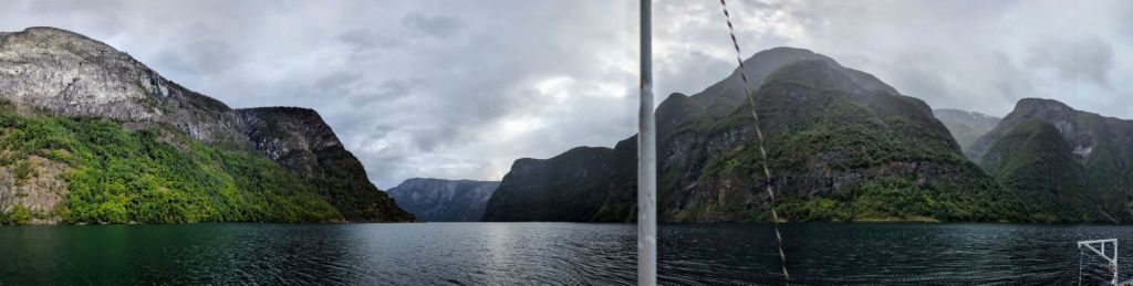 We catch a small ferry from Gudvangen to Flam first thing in the morning, a two hour trip through the spectacular Aurlandsfjord. It is one of the narrowest fjords in Norway with sheer mountains rising up 3,000 feet above the water. There are small villages along the coastline, the brightly painted homes contrasting with the steel blue waters of the fjord. We see kayakers and porpoises and marvel at the natural beauty.