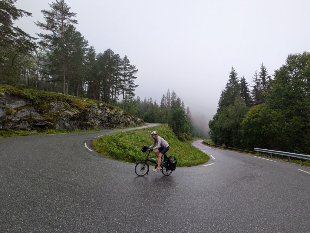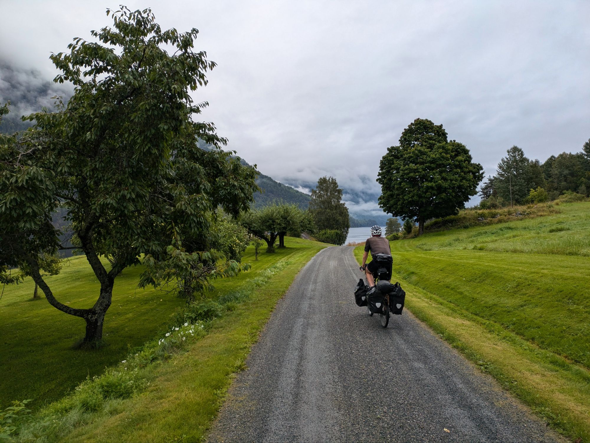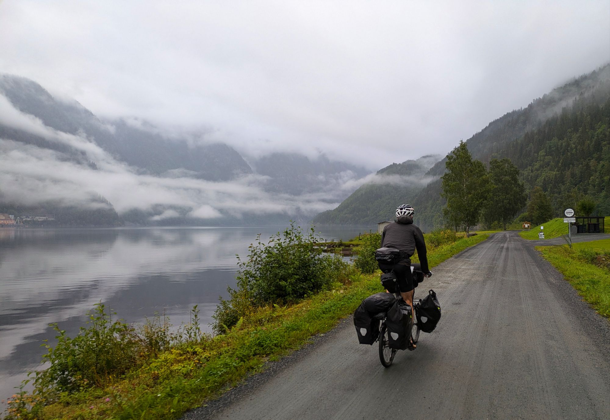 We reach Skien at 7 pm, after 10+ hours of riding, tired and hungry, and find a hotel that delivers perfectly. Our room has a beautiful view of the end of the Telemark Canal, the water in the shower is hot and dinner and breakfast are included. We eat well and fall asleep. In the morning, we enjoy the Norwegian breakfast of champions: fresh multi grain bread full of sunflower seeds, salmon gravalox with tomato, cucumber and lettuce. It’s delicious. For good measure we have musli too.