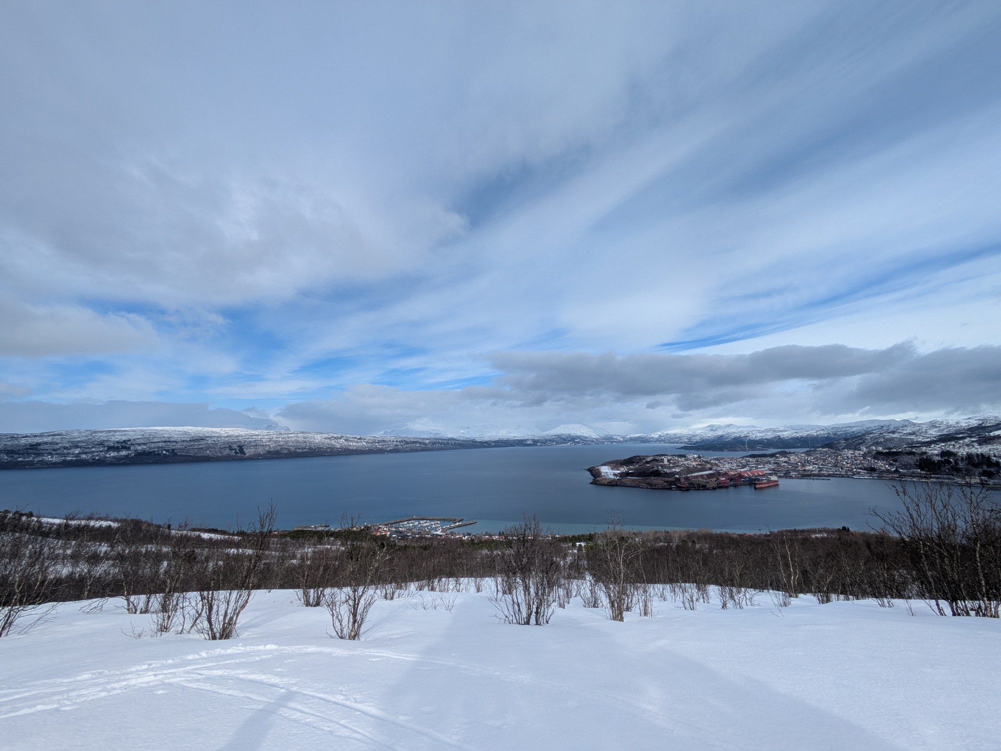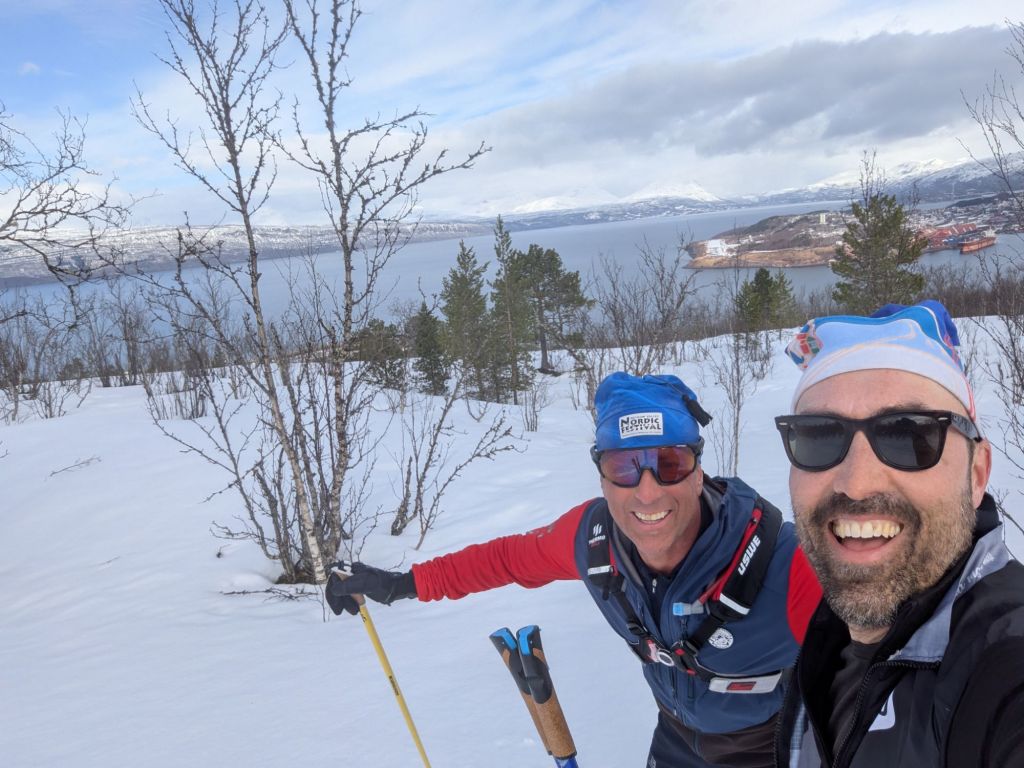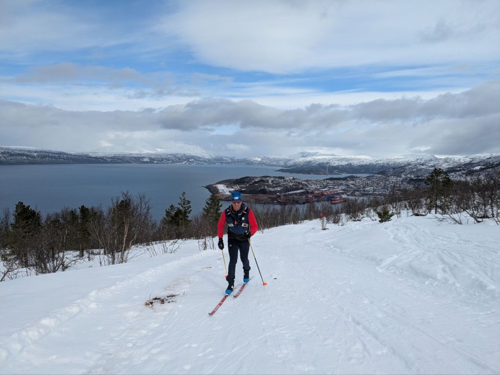 We shuttle down to Ankenes for our final ski of the trip, a steep climb up the side of a mountain with majestic views of the Oforfjord surrounding Narvik.