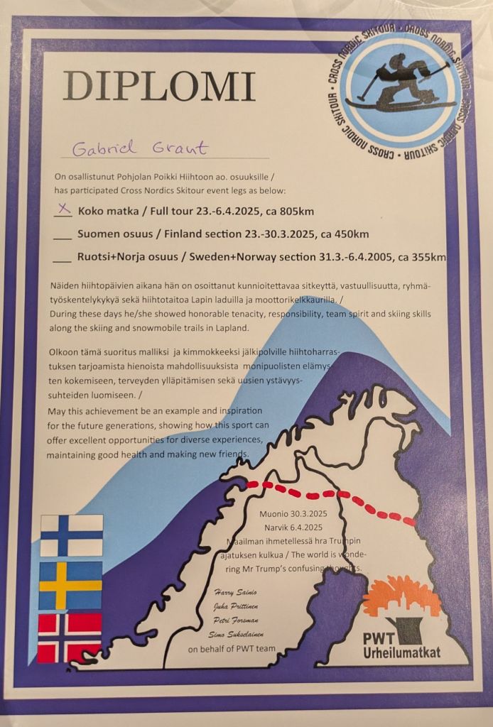 4. Gabe, it was such a delight to follow along. I’m also a skate skier with Scandinavian dreams brewing since my first trip to Finland when I was 17. I was dazzled by the snacks, the trails, and the northern lights. Your words brought it all back and fanned the flames of future trip ideas. Midday reindeer soup magic, more sisu than one bargains for, and plentiful sauna…my kind of trip. Thank you for taking the time to bring us along with you and Jim and the rest of the crew.
