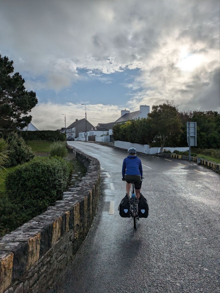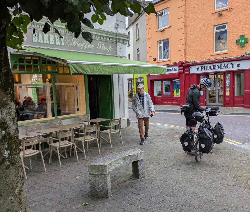 It’s gray and wet as we ride out of Tralee, through northern County Kerry and into County Clare. The roads are quiet on this Saturday morning. The clouds are low and intermittent rain hints at the arrival of fall. We pass through charming Listowel, three time winner of Ireland’s Tidiest Town award, as a banner entering town proudly announces. We stop for a mid-morning snack at Lynch’s Bakery, where a friendly older man in line tells us, in one long non sequitur of a sentence, that the coffee at Lynch’s is excellent and that the U.S. now has a Department of War. We smile. And he’s right, the coffee is excellent.