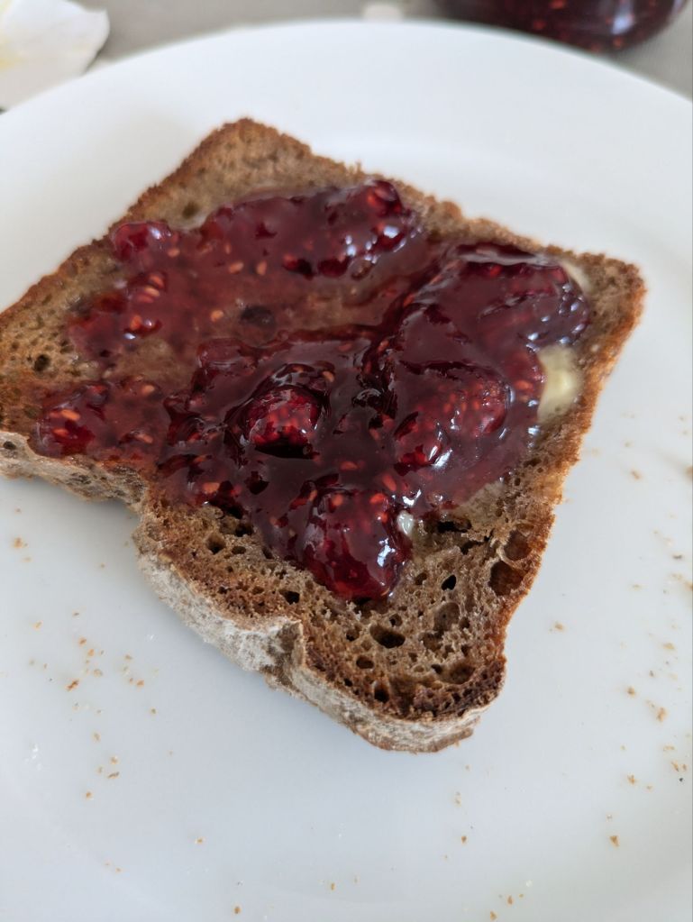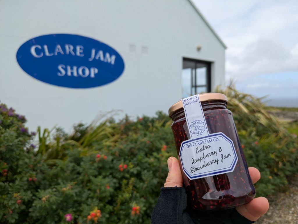 We get cleaned up and enjoy hot tea with toasted brown soda bread slathered with Irish butter and raspberry strawberry jam purchased earlier just up the road.
