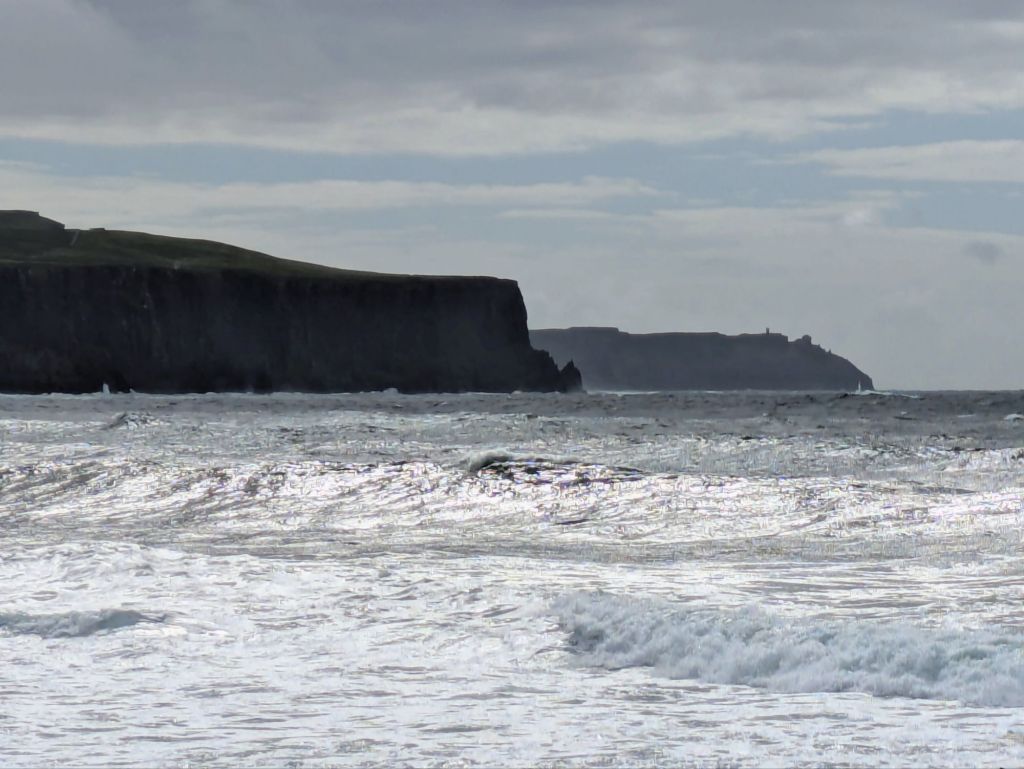 From the boat, we see the famous Cliffs of Moher, which are beautiful from this vantage point. Since featuring in a Harry Potter movie, they are overrun by tourist busses and we are happy to have missed that experience in favor of quiet country roads.