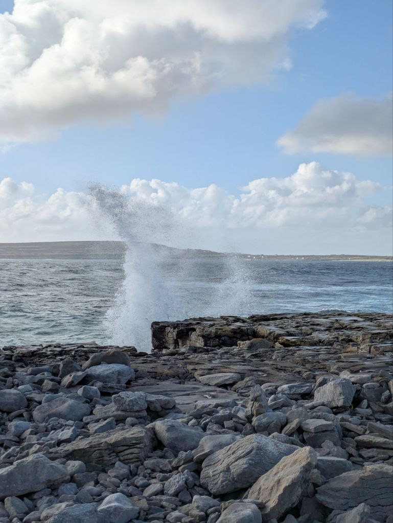 The ferry trip to Inisheer is an adventure. The seas are rough and the small passenger ferry bucks over the swells, sea spray soaking us in the open seating area. At this point, we are very used to being wet.